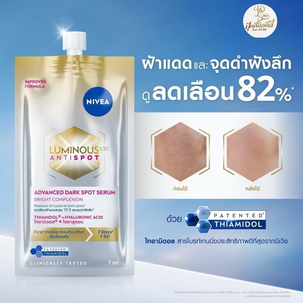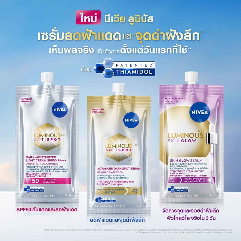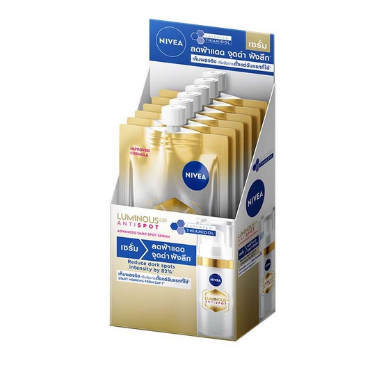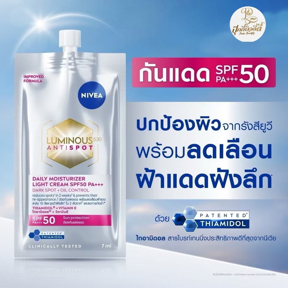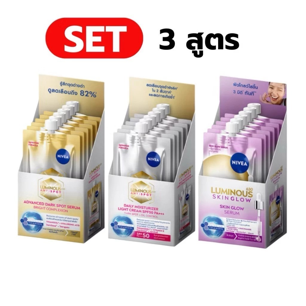 (ยกกล่อง 6 ซอง)Nivea Luminous 630 นีเวีย ลูมินัส 630 แบบซอง 7 ml. ดาร์คสปอตเซรั่ม / สกินโกลว์เซรั่ม / ไลท์ครีมกันแด