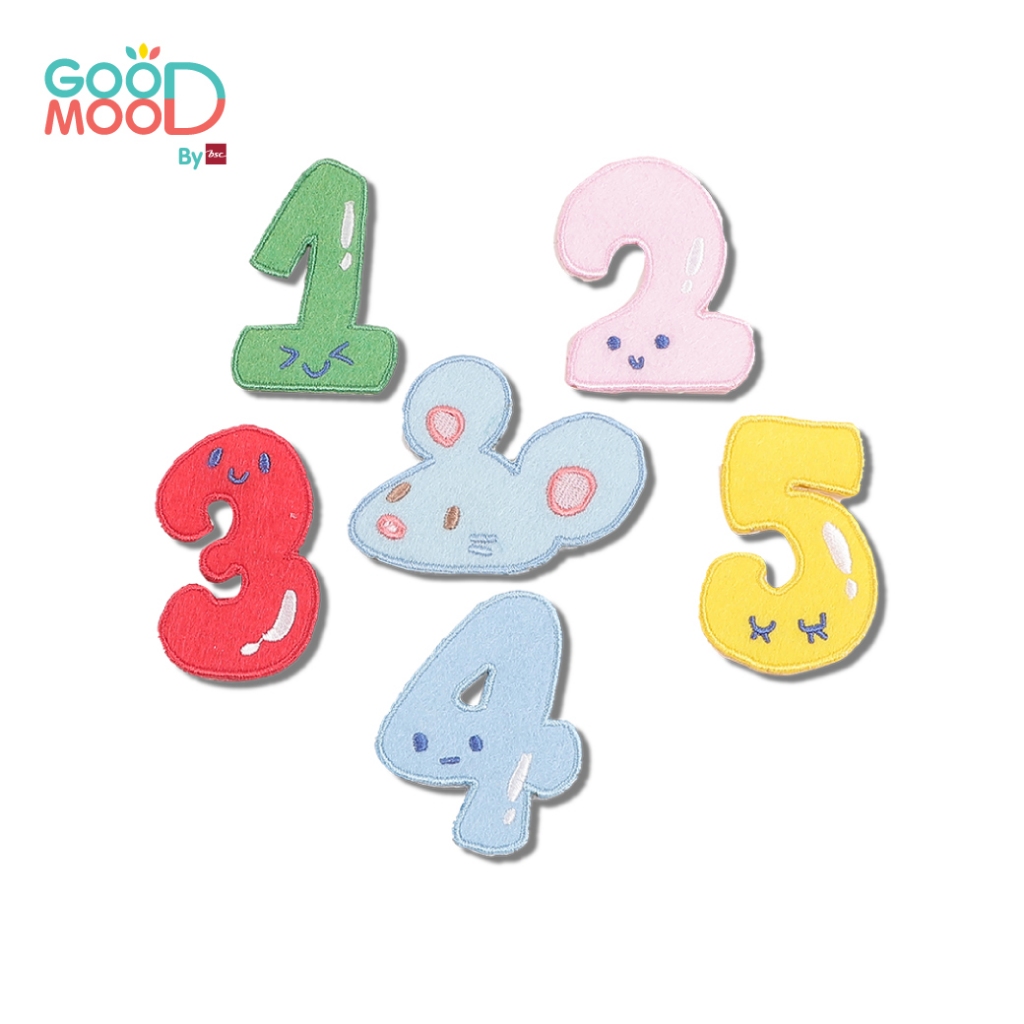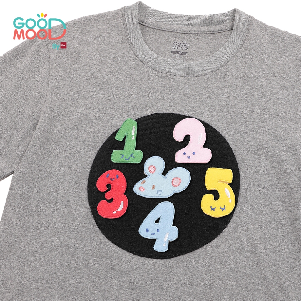 Good Mood by bsc เสื้อยืดคอกลม แขนสั้น สีเทา + PATCHES ลายตัวเลข 6 ชิ้น สำหรับเด็กอายุ 8-9 ปี ผ้าคอตตอน
