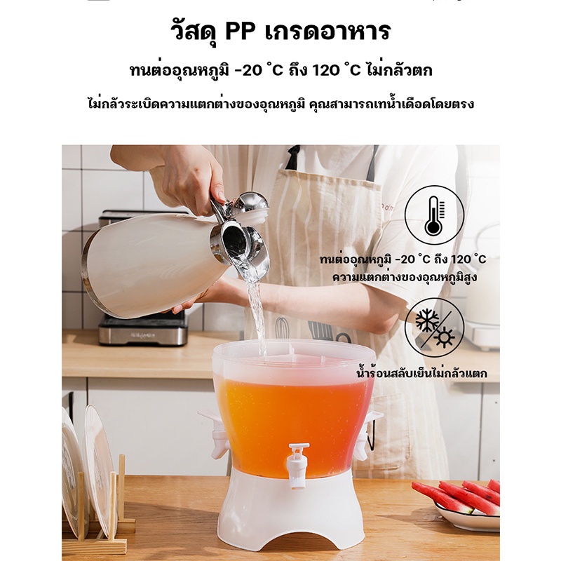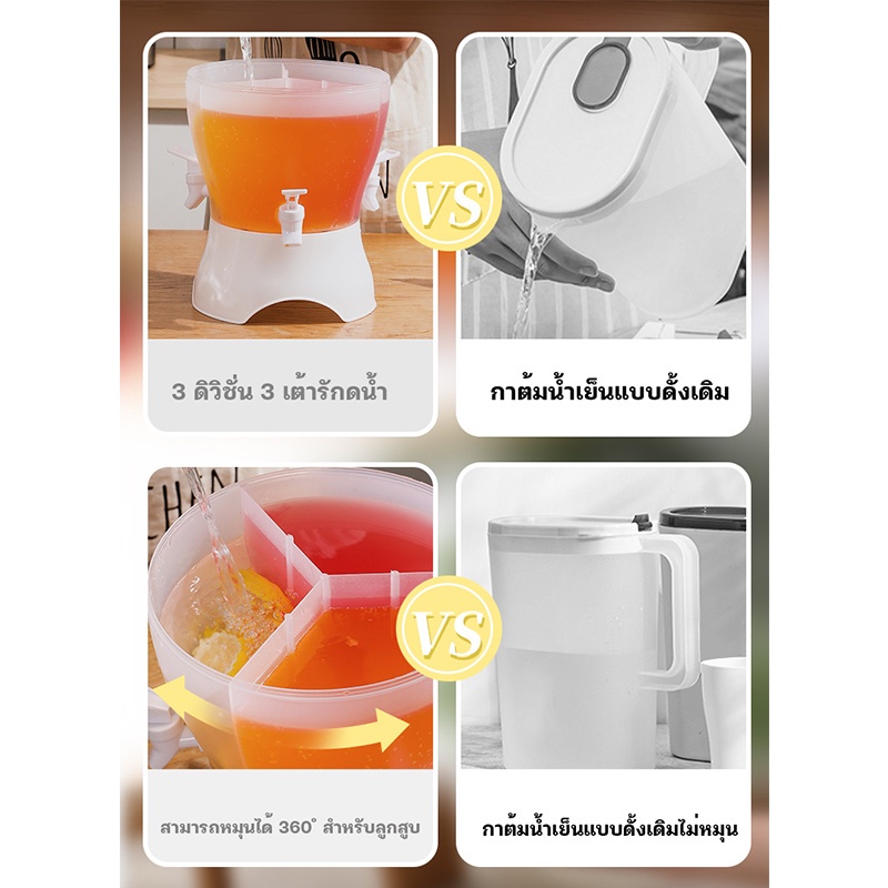 คูลเลอร์มีก๊อก กาต้มน้ำเย็น คูลเลอร์กดน้ำทรงสีเหลี่ยม (3.5 ลิตร) คูลเลอร์ใส่น้ำอเนกประสงค์ทรงกลมพร้อมก๊อก 3 หัว(ความจุ 4