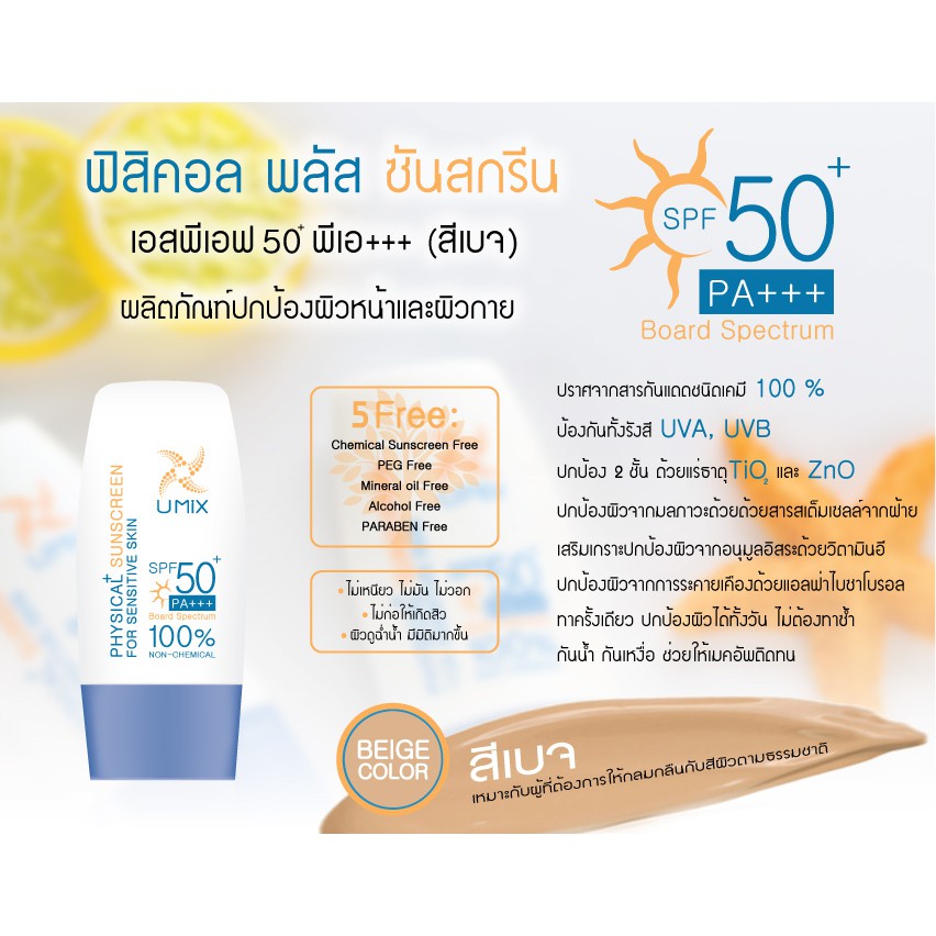 🌟 ครีมกันแดดสูตรฟิสิคอล ปราศจากสารกันแดดชนิดเคมี 100 % ยูมิกซ์ UMIX PHYSICAL+ SUNSCREEN FOR SENSITIVE SKIN SPF50 PA+++