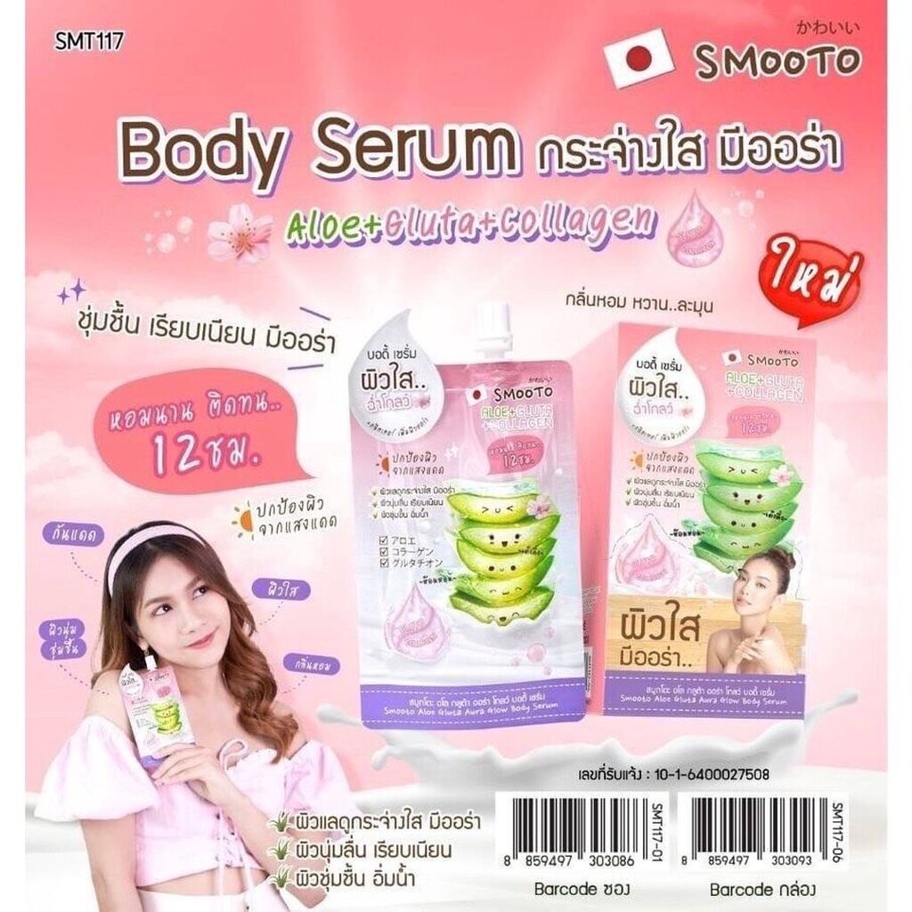 (1ซอง) Smooto Aloe Gluta Aura Glow Body Serum 50กรัม แบบซอง บอดี้เซรั่ม ผิวใส ฉ่ำโกลว์