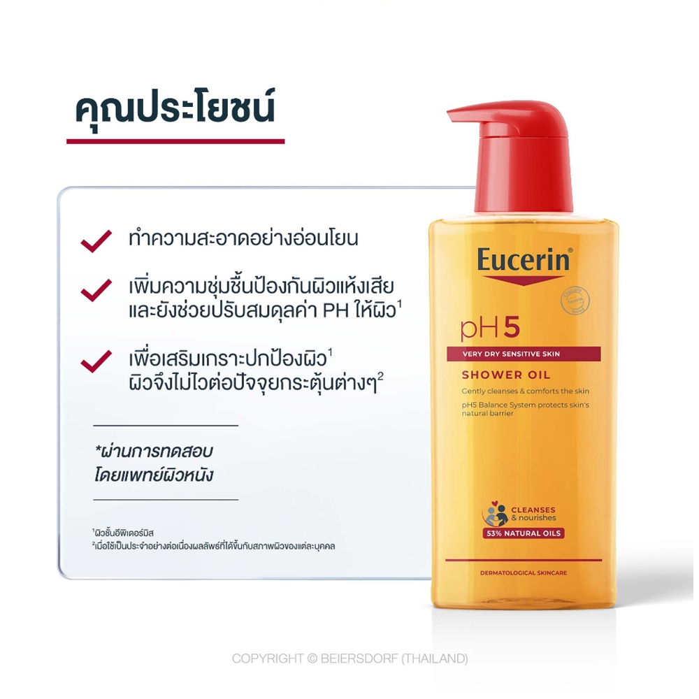 Eucerin pH5 Very Dry Sensitive Skin Shower Oil 400 ml. ครีมอาบน้ำ สูตรผสมออย สำหรับผิวกาย