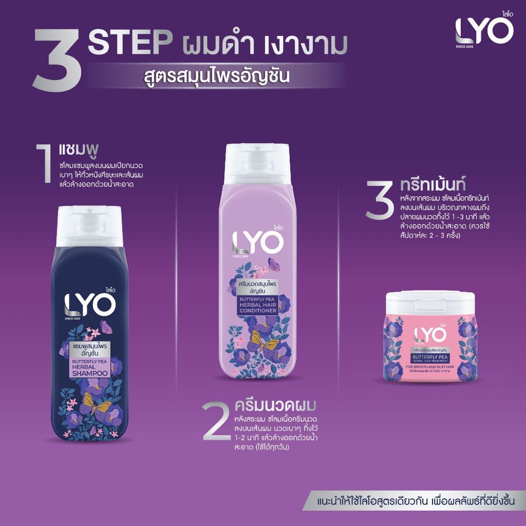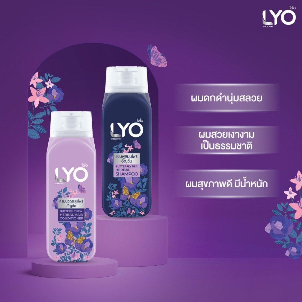 แชมพู / ครีมนวด /ทรีทเม้นท์ สมุนไพรอัญชัน/,มะกรูด ไลโอ LYO Butterfly Pea Herbal Conditioner