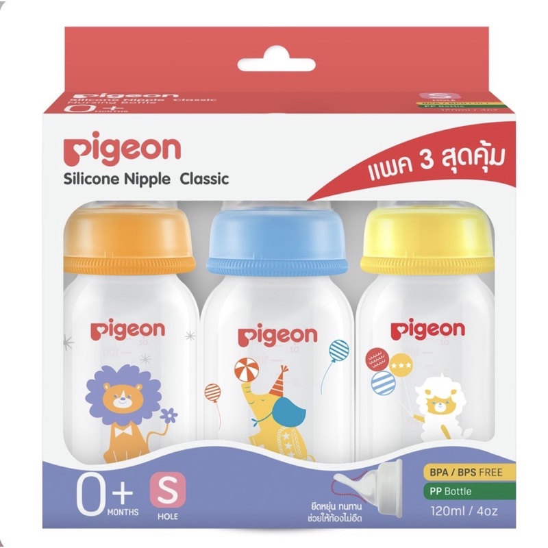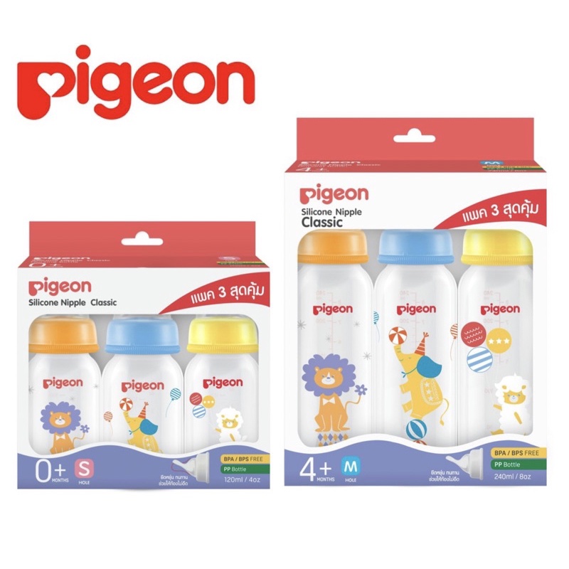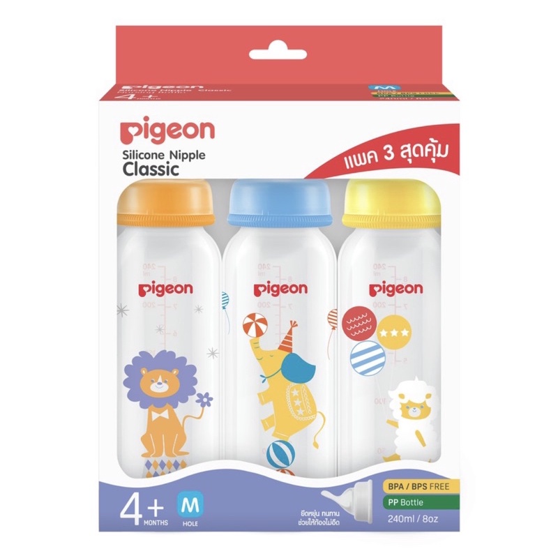 Pigeon พีเจ้น ขวดนมคอมาตรฐาน RPP เซอคัส มาพร้อมจุกคลาสสิค ขนาด 4oz. และ 8oz แพ็ค 3 ขวด