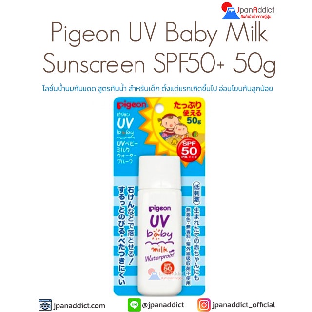Pigeon UV Baby Milk Waterproof SPF50+ PA++++ ครีมกันแดด สำหรับเด็ก ครีมกันแดดญี่ปุ่น