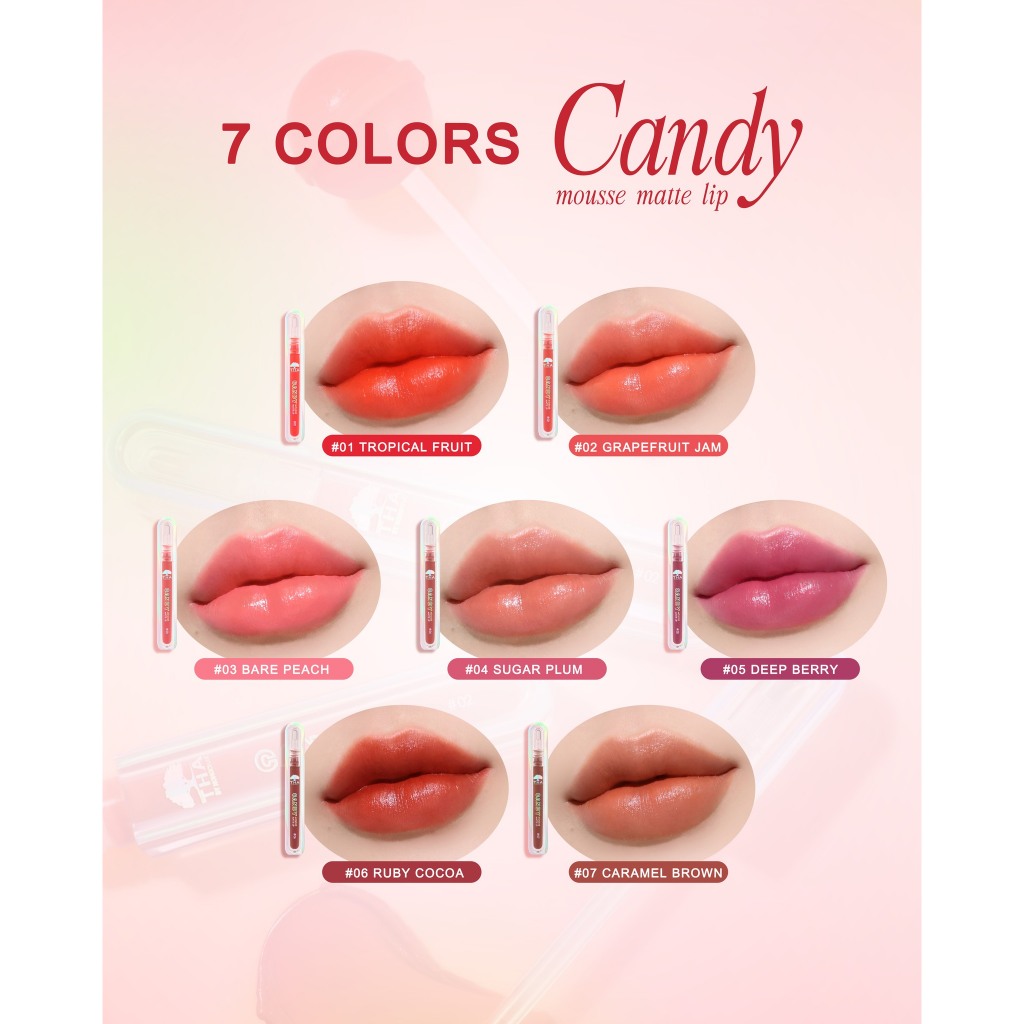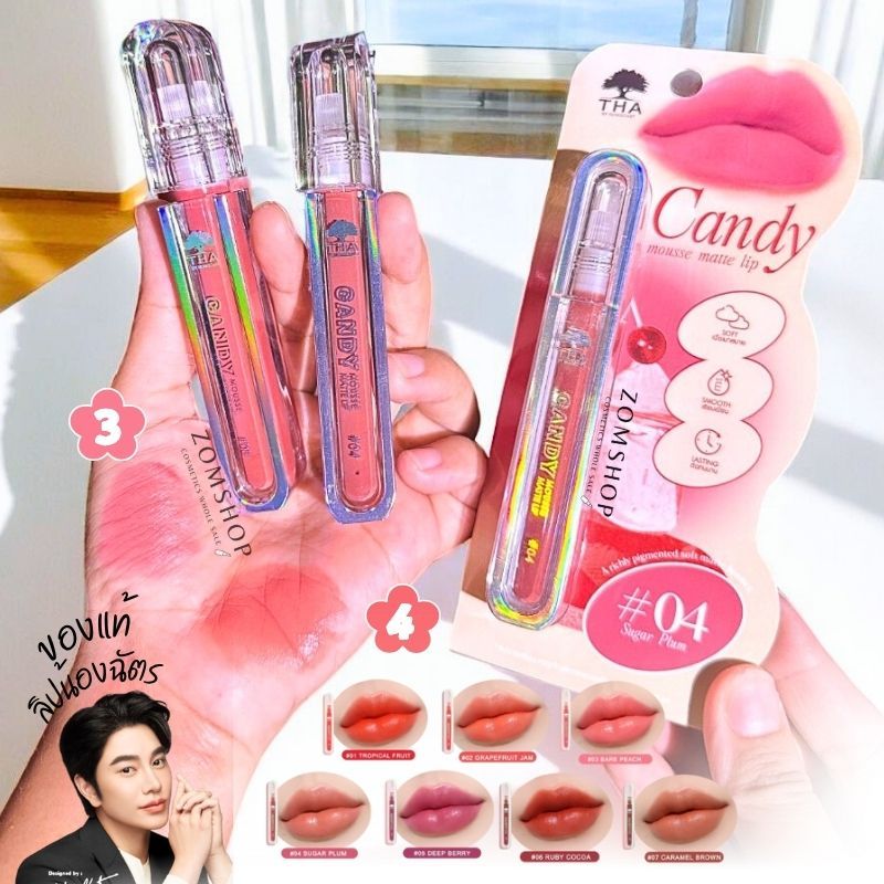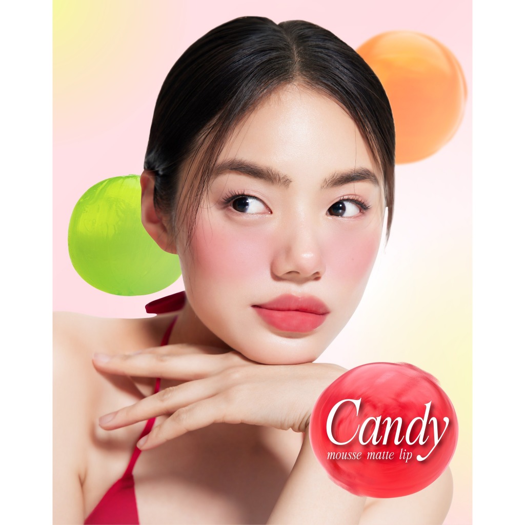 【น้องฉัตร】ลิปซอฟต์แมทท์【แคนดี้มูสแมทท์】กลิ่นหอมผลไม้ Candy Mousse Matte Lip 2.5g THA BY NONGCHAT
