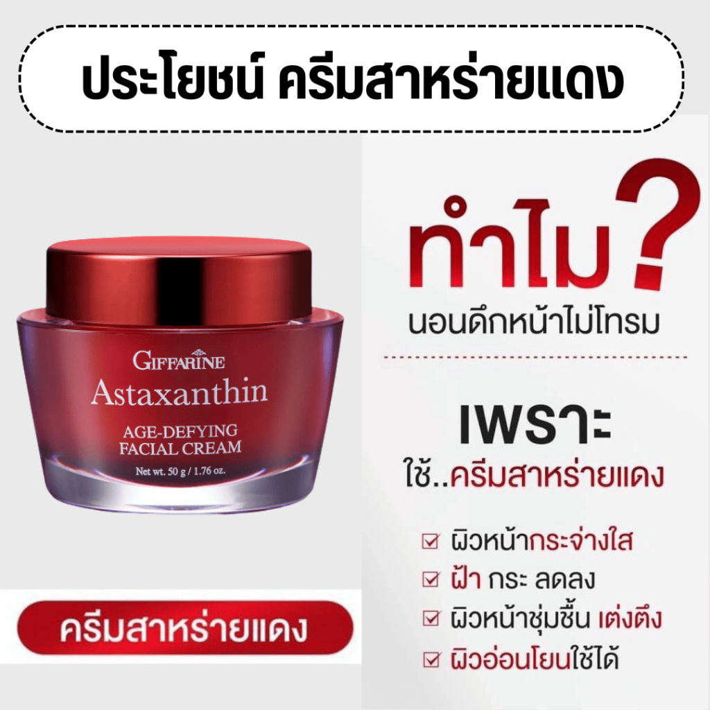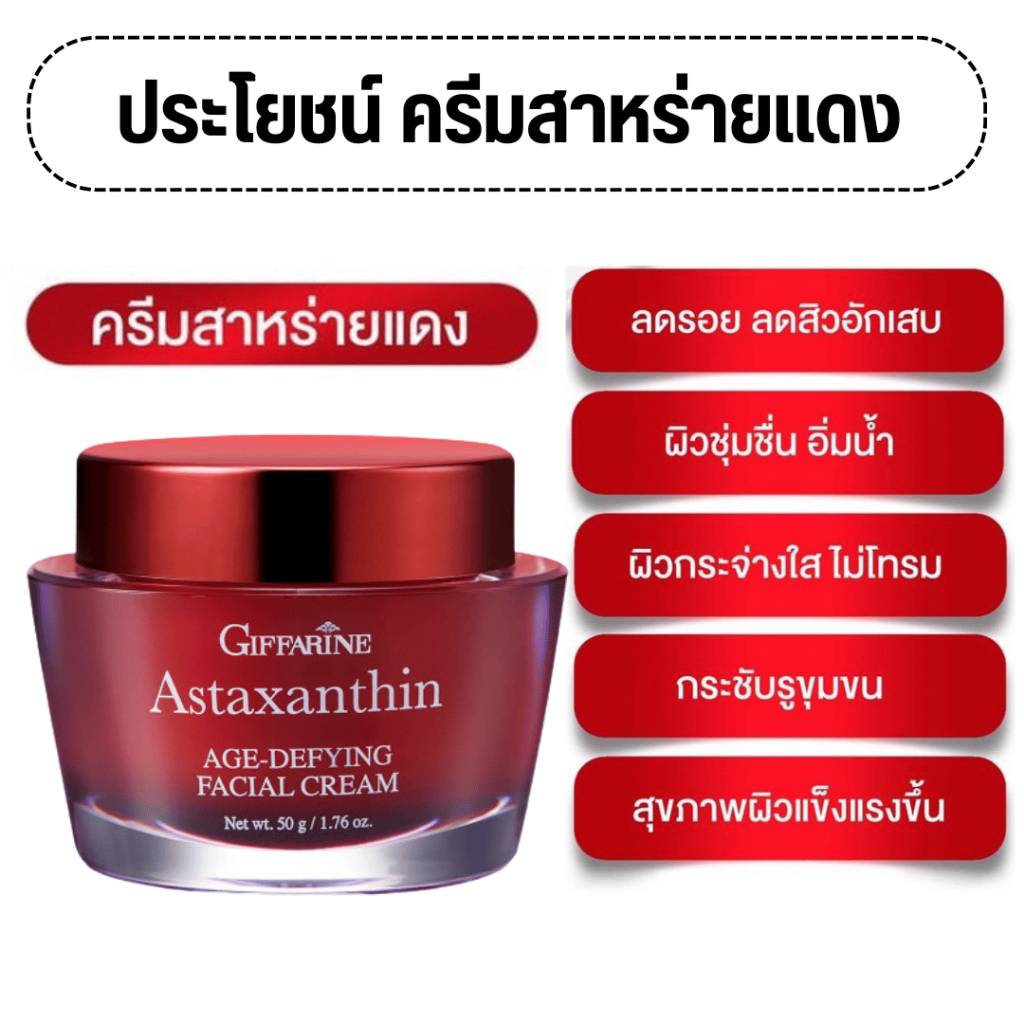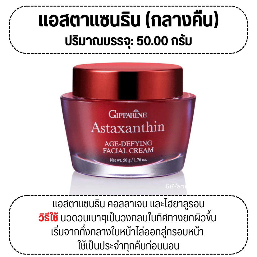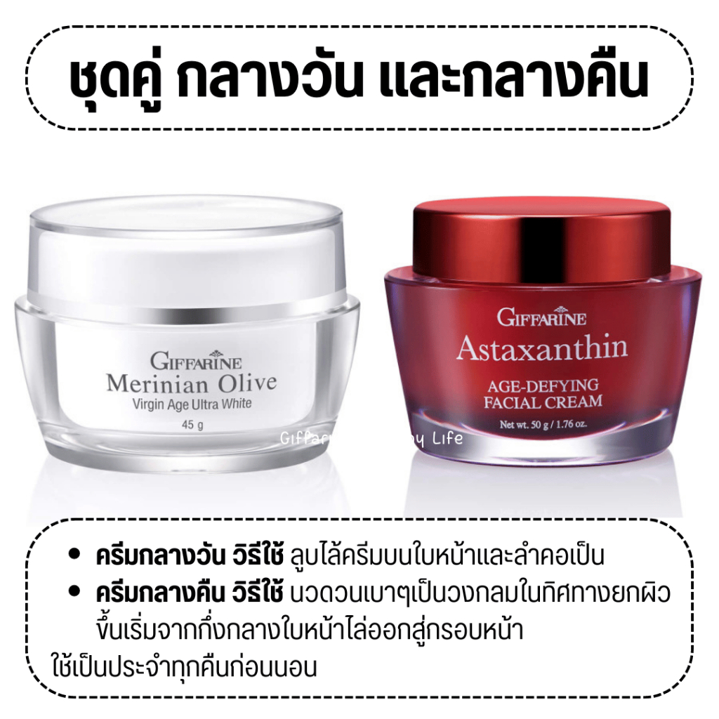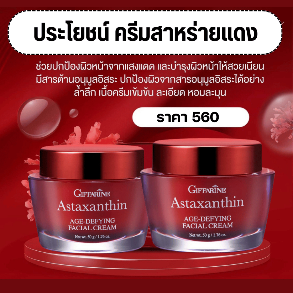 ชุดบำรุงผิวหน้า กิฟฟารีน ครีมลดริ้วรอย ร่องลึก ผิวหน้ากระจ่างใส ครีมแอสตาแซนธิน ครีมน้ำมันมะกอก สาหร่ายแดง