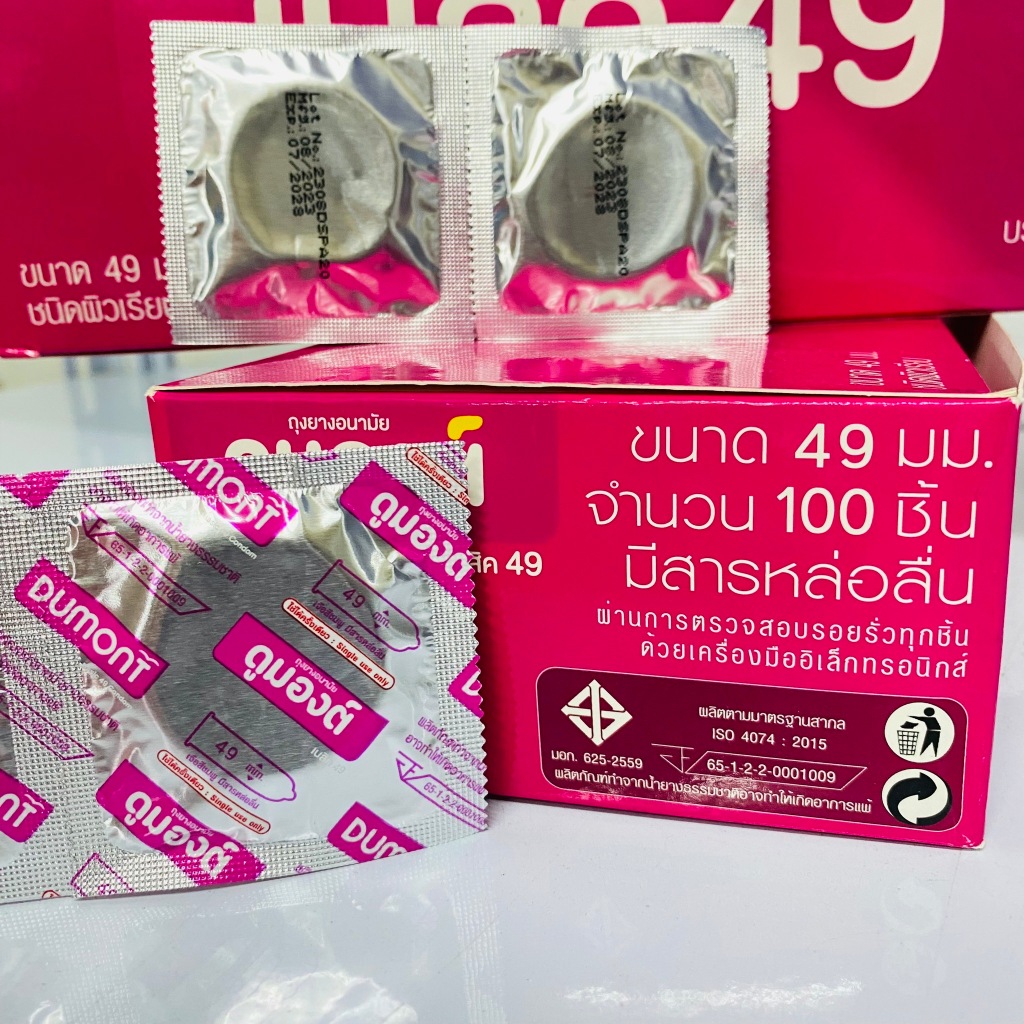 Dumont ดูมองต์ ถุงยางอนามัย ขนาด 49 mm. ผิวเรียบ [รุ่น Basic] [แบ่งขาย 1 ซอง/5 ซอง] ถุงยาง condom มีสารหล่อลื่น