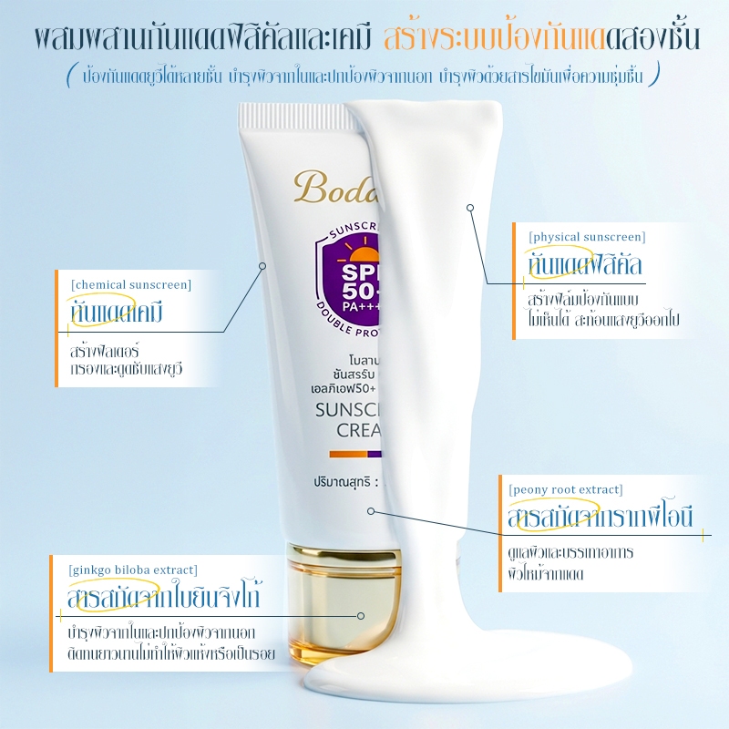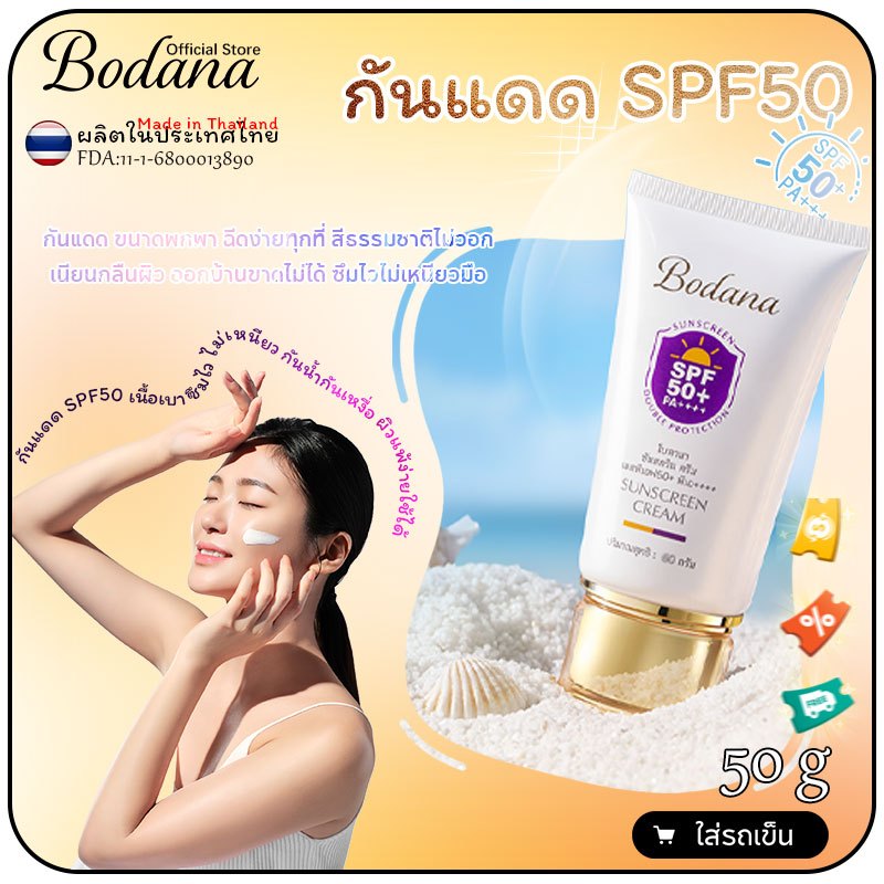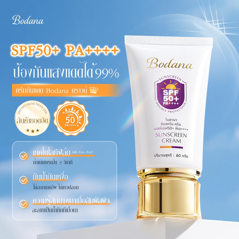 Bodana กันแดด SPF50+ PA++++ เนื้อเซรั่มเบา ซึมไวไม่มัน ใช้ได้ทุกวัน แพ้ง่ายโอเค