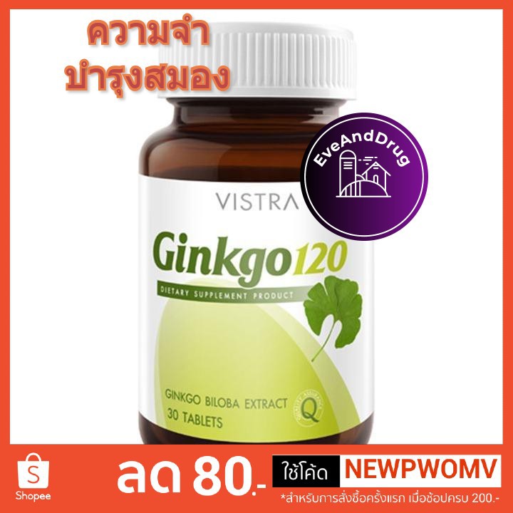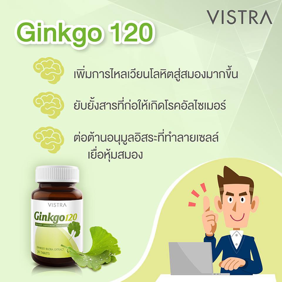 VISTRA GINKGO 120 MG 30 TABLETS ใบแป๊ะก๊วย วิสทร้า 30 เม็ด อาหารสมอง