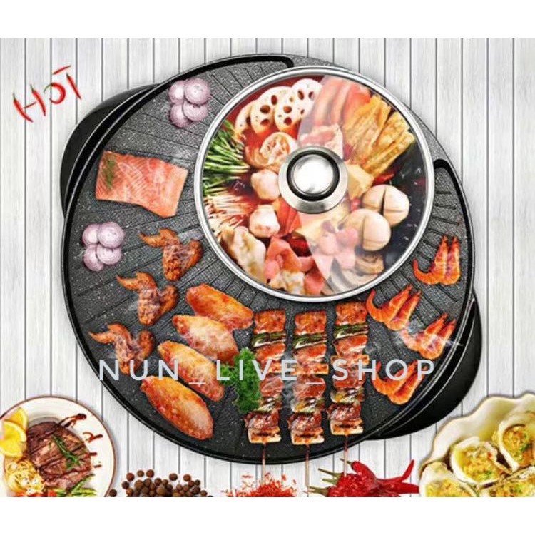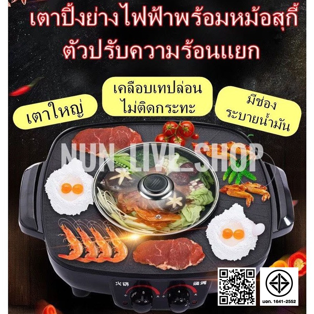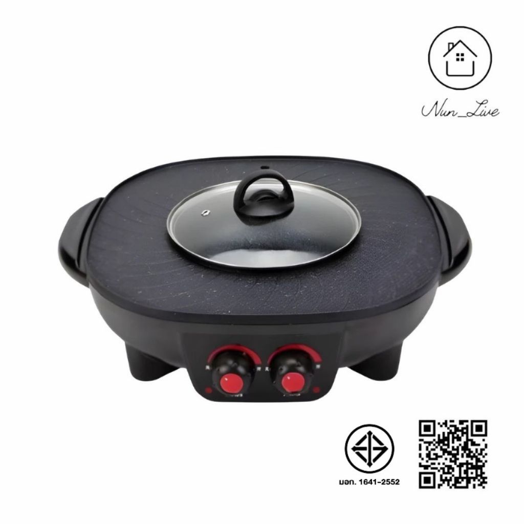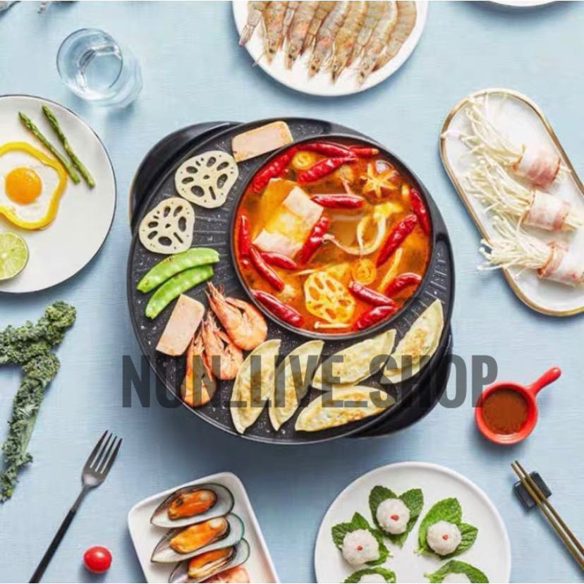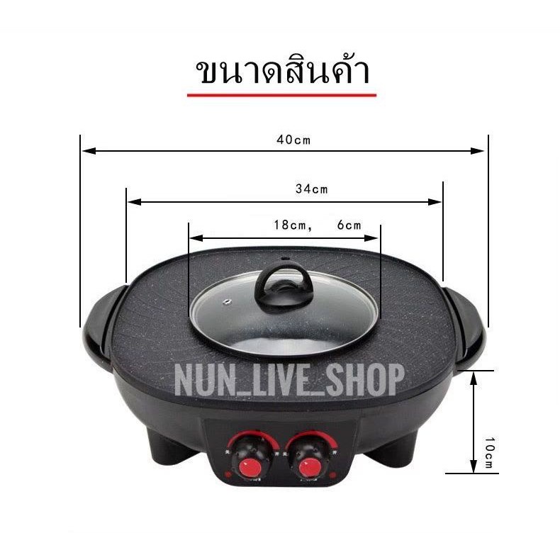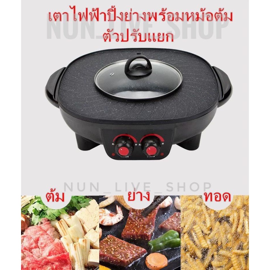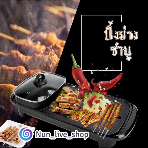 กระทะปิ้งย่างไฟฟ้า หม้อสุกี้ ชาบู 2 in 1 ใช้ได้2แบบ