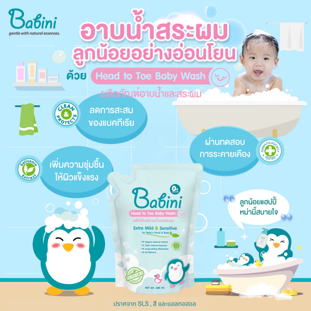 Babini Head To Toe Wash (เบบินี่ เฮด ทู โท วอช) 400 ml.(แบบเติม)