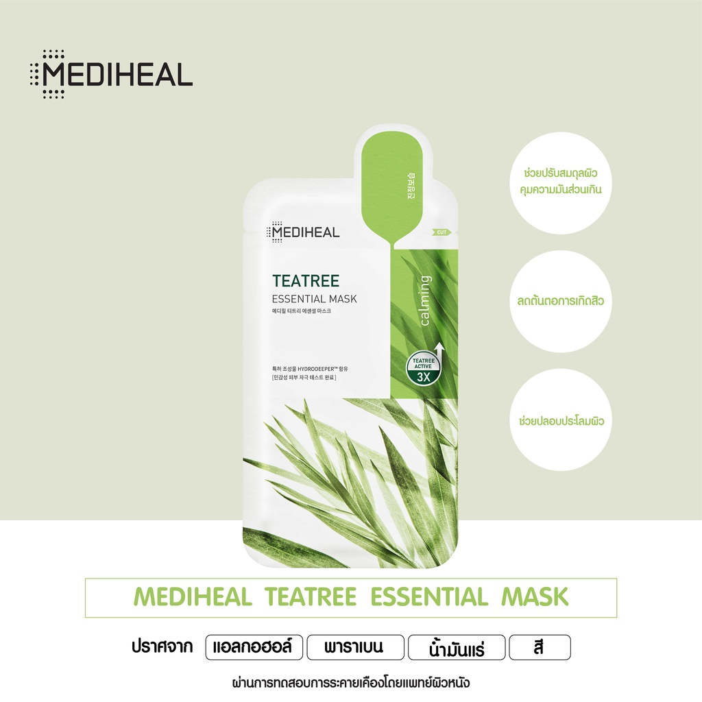 ถูก/แท้/มีไลฟ์ มาสก์ Mediheal Essential Mask Vita Placenta Collagen Tea Tree เมดิฮีล มาสก์หน้า บำรุงหน้า กระจ่างใส