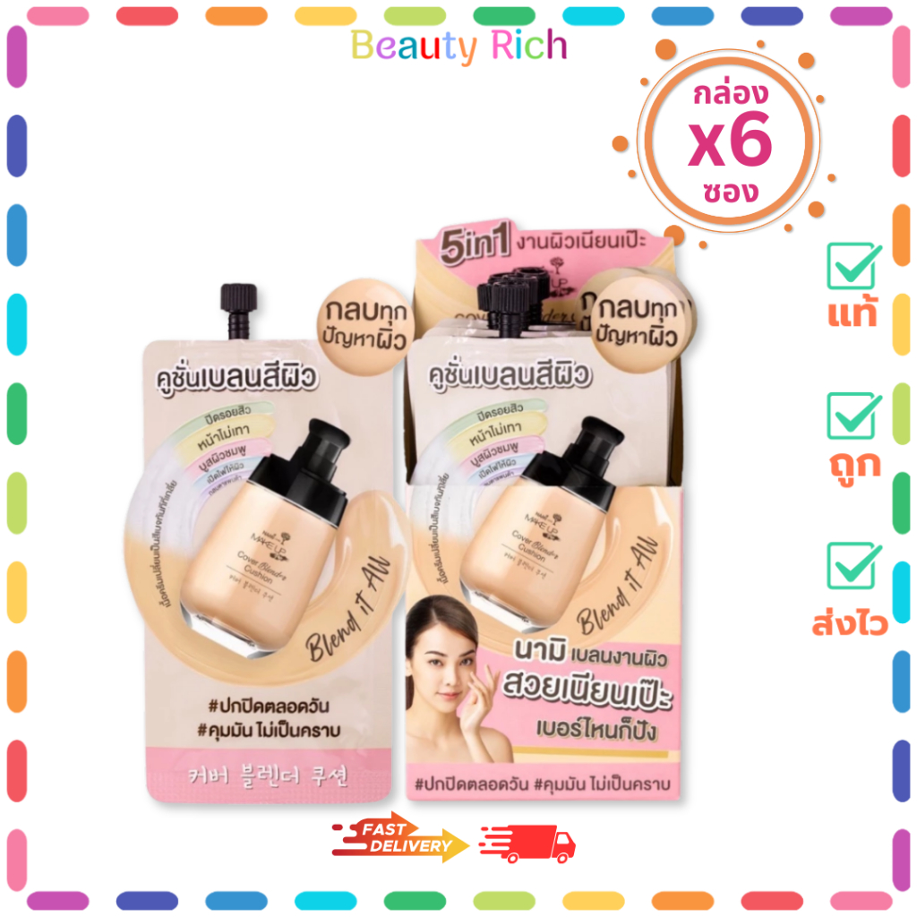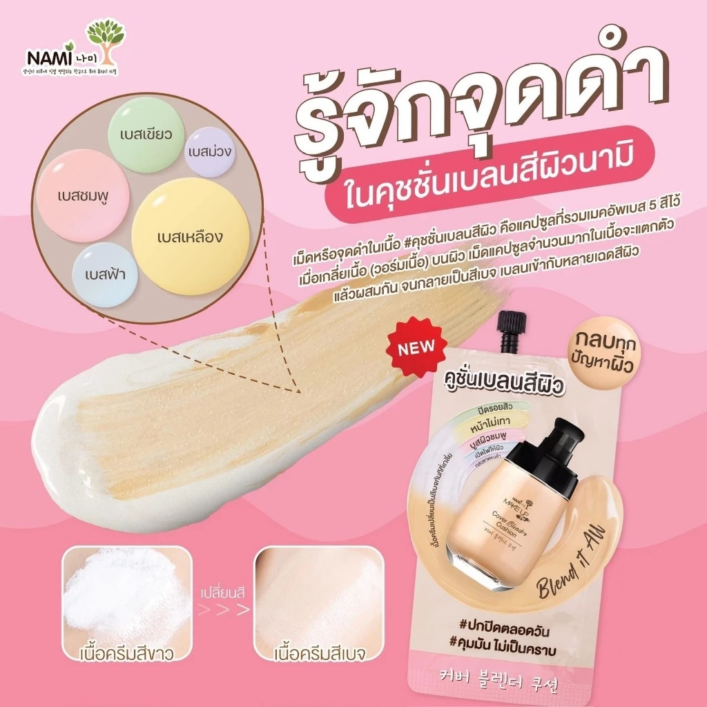(กล่อง 6 ซอง) คุชชั่นเบลนสีผิว Nami Make Up Pro COVER Blender CUSHION (ปริมาณ 5 กรัม)