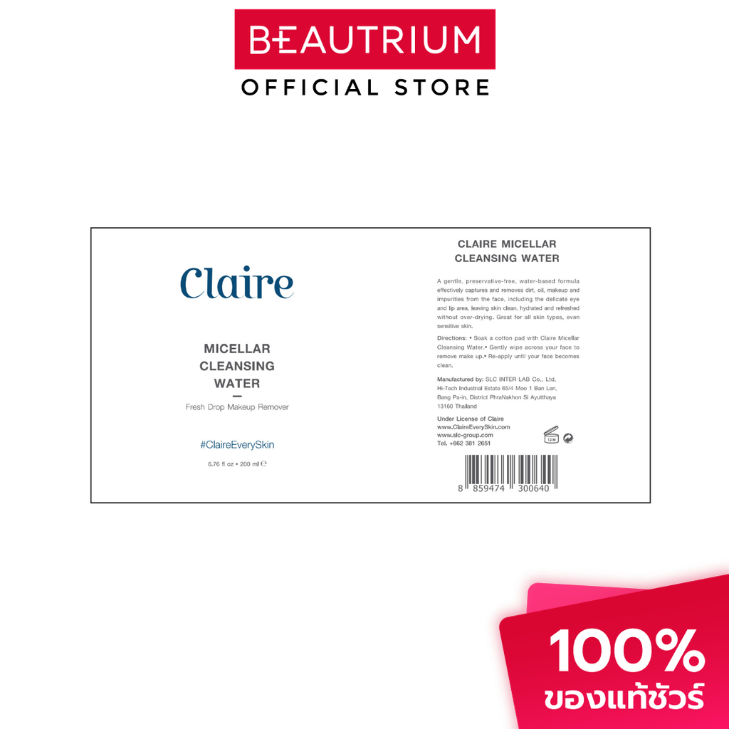 CLAIRE Micellar Cleansing Water ที่เช็ดเครื่องสำอาง 200ml
