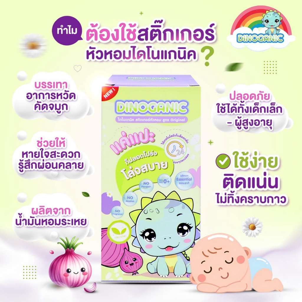 DINOGANIC ไดโนแกนิก สติกเกอร์หัวหอม สูตรออริจินอล (1กล่องบรรจุ 7 ซอง)