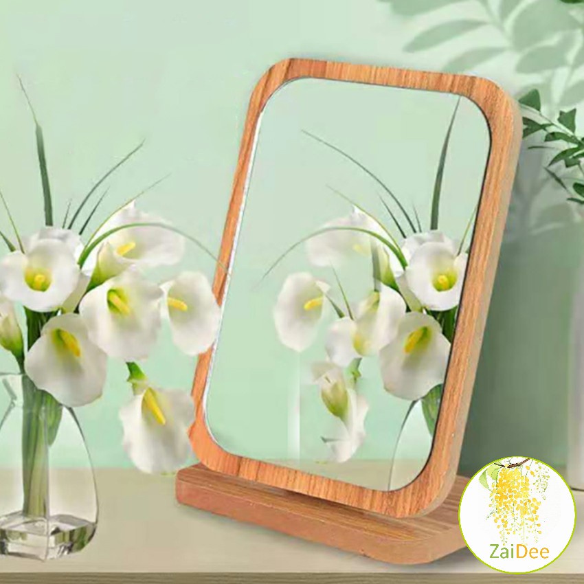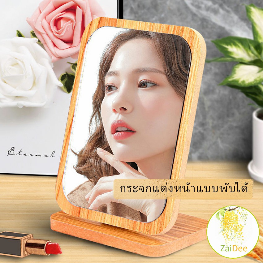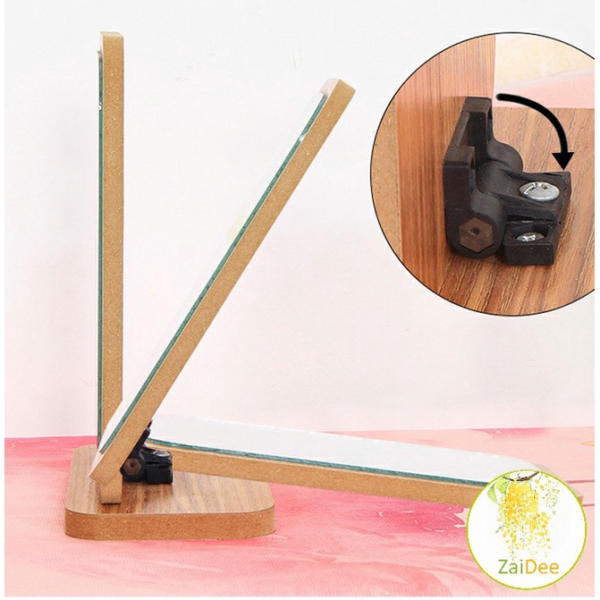 กระจกแต่งฐานพับได้ ปรับองศาได้ ขอบอัดทำด้วยไม้ มี 2 ขนาดให้เลือก กระจกตั้งโต๊ะ Makeup mirror