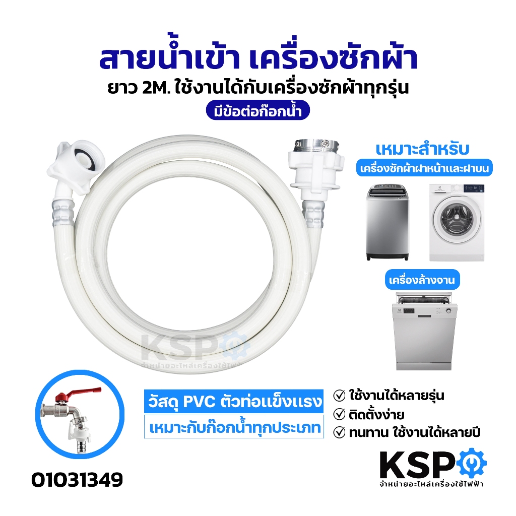 สายน้ำเข้า สายน้ำดี เครื่องซักผ้า ยาว 2M. ใช้งานได้กับเครื่องซักผ้าทุกรุ่น มีข้อต่อก๊อกน้ำ อะไหล่เครื่องซักผ้า