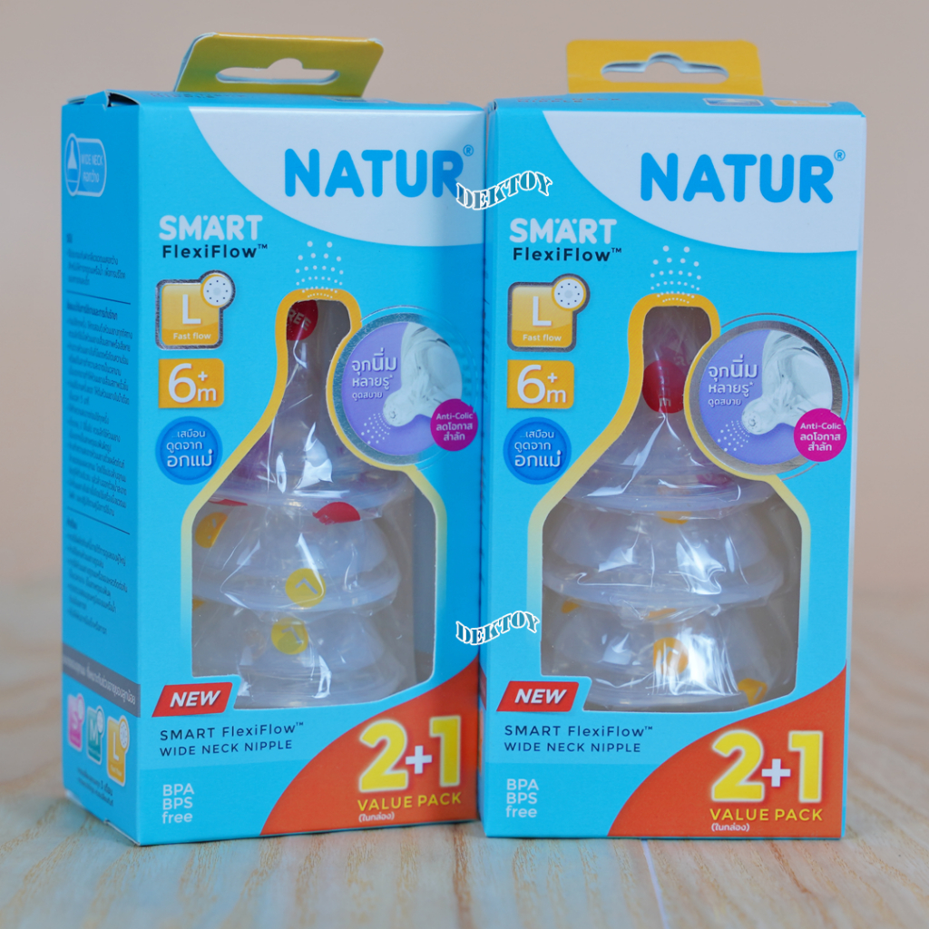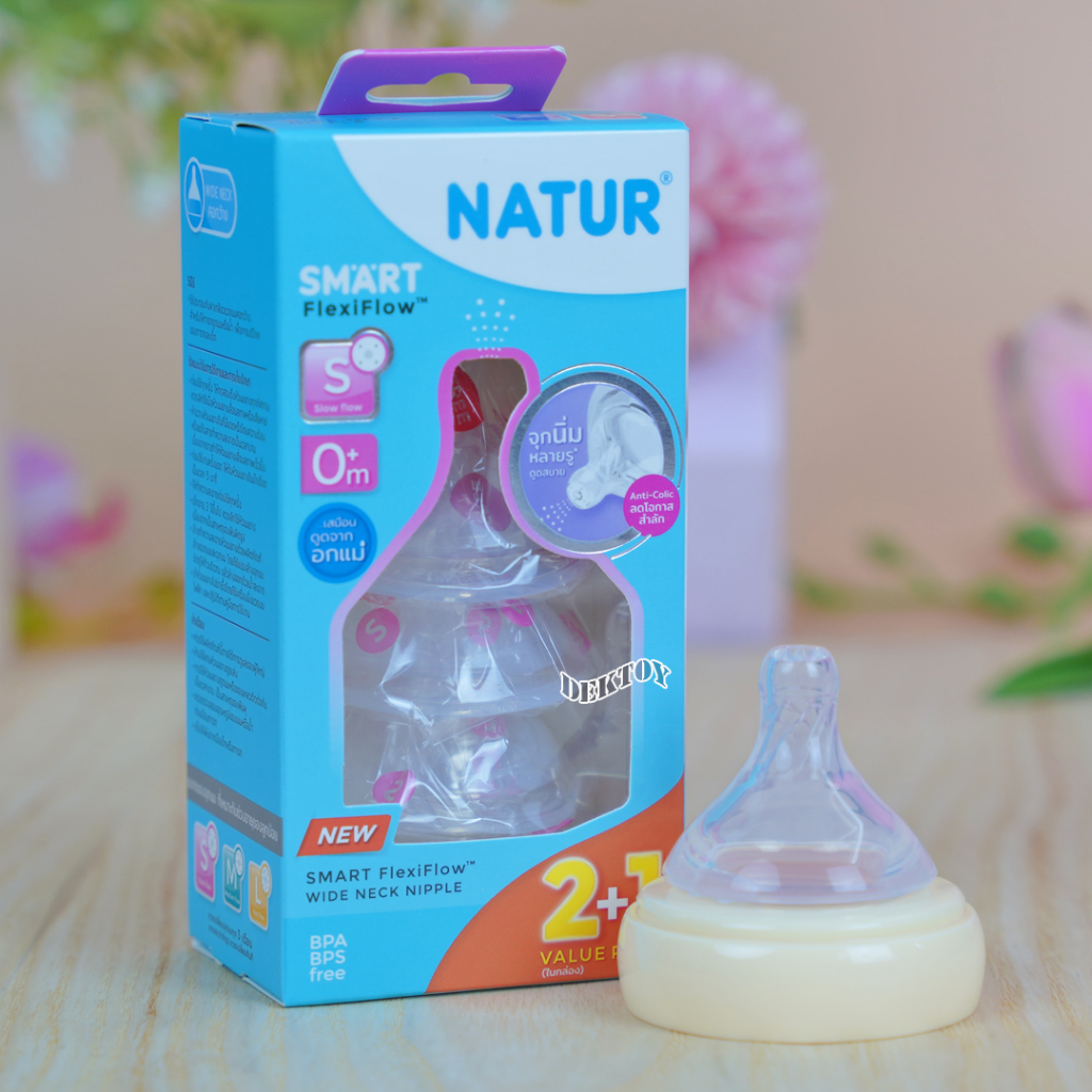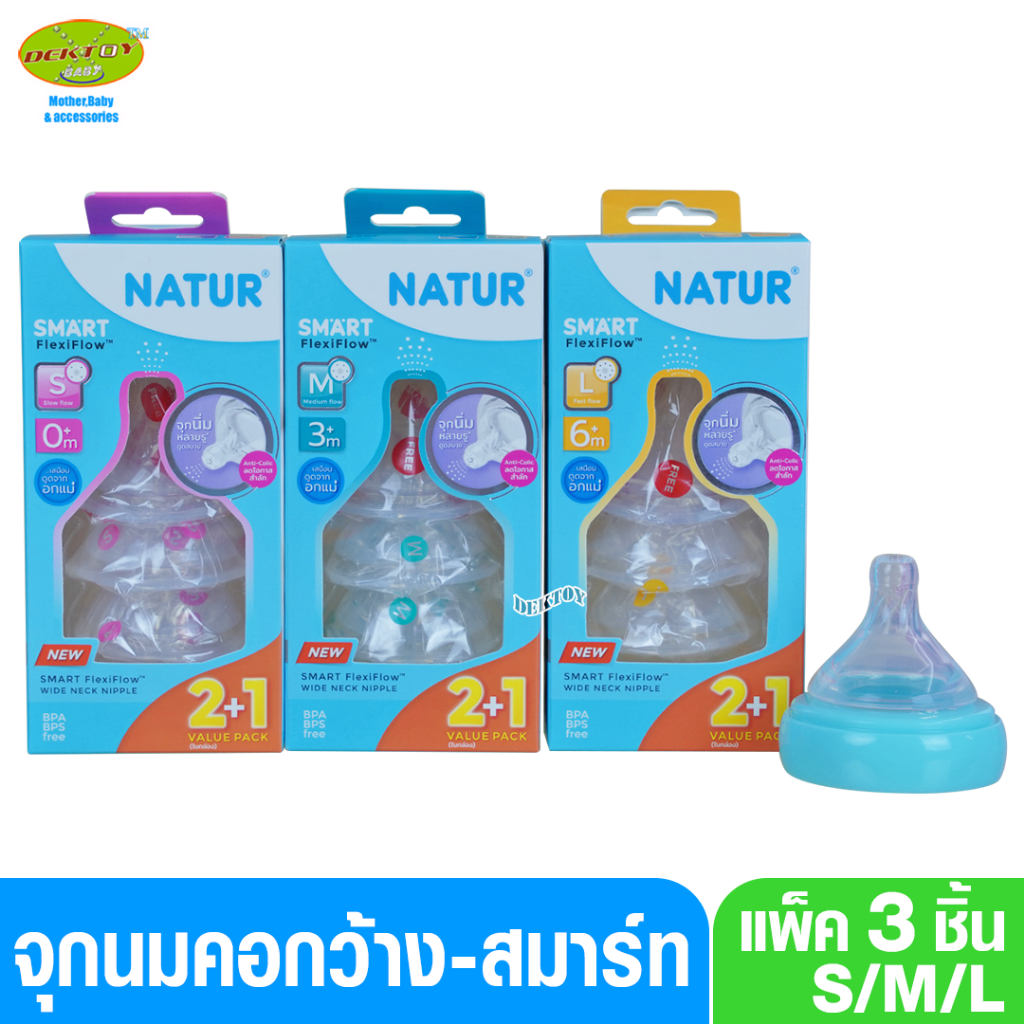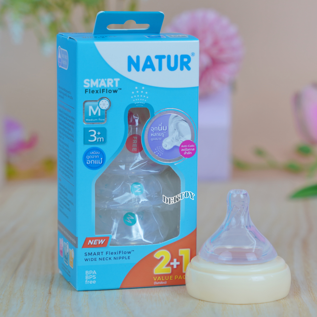 Natur เนเจอร์ จุกนมคอกว้าง จุกนมนิ่มพิเศษ เนเจอร์สมาร์ท จุกนิ่มหลายรู แพ็ค3ชิ้น Smart FlexiFlow
