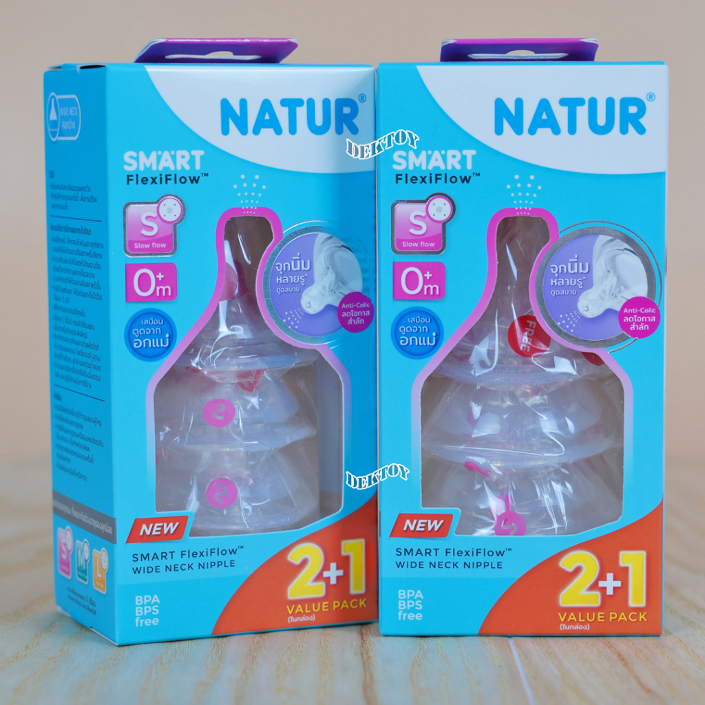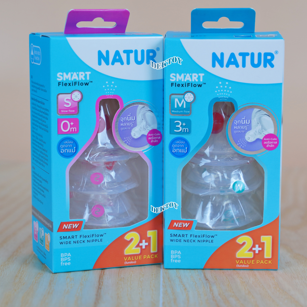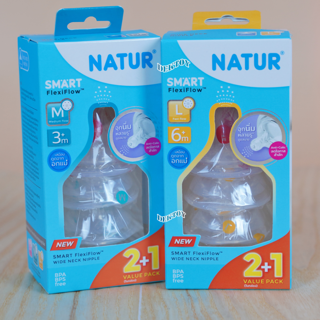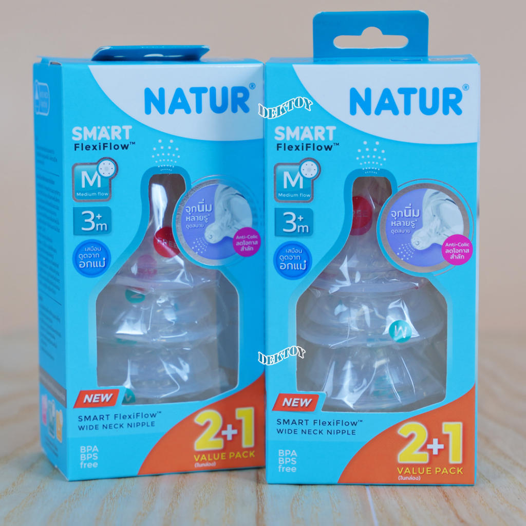 Natur เนเจอร์ จุกนมคอกว้าง จุกนมนิ่มพิเศษ เนเจอร์สมาร์ท จุกนิ่มหลายรู แพ็ค3ชิ้น Smart FlexiFlow