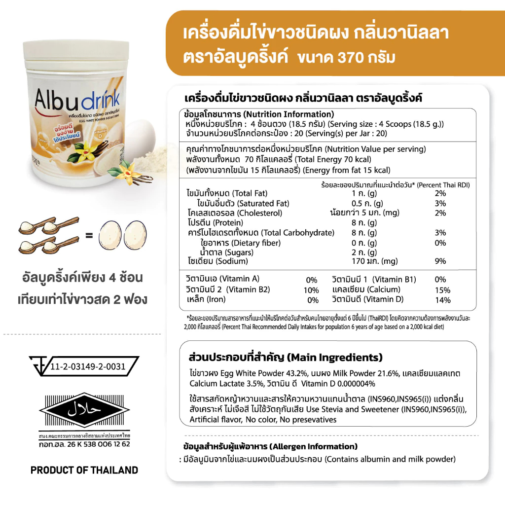 Albu Drink Egg White Powder Instant Drink Chocolate/Vanilla/Strawberry [มีให้เลือก 3 สูตร] ผงไข่ขาว