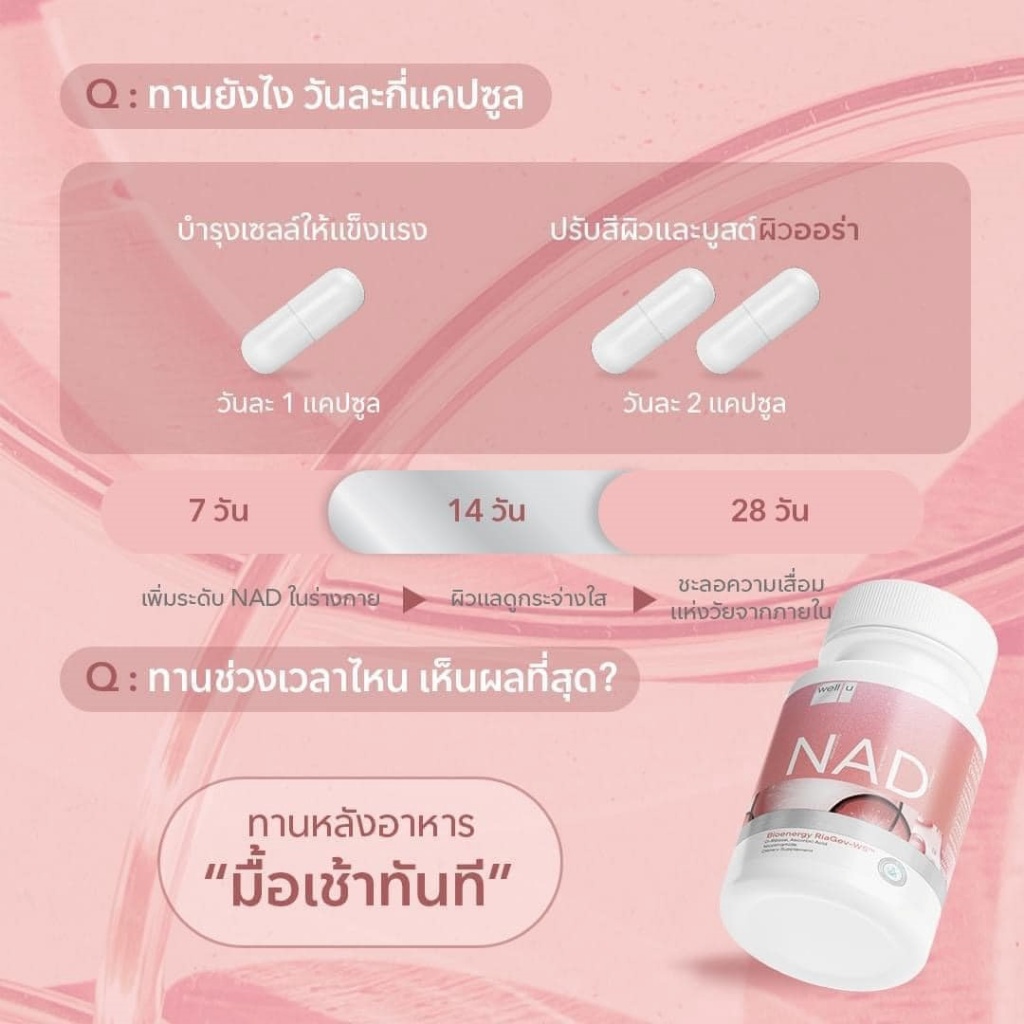 WELL-U NAD Plus เวล ยู แน็ด พลัส [30 แคปซูล] [1 กระปุก] อาหารเสริมดูแลผิว ผิวสวย กระจ่างใส ช่วยฟื้นฟูผิว ชะลอวัย
