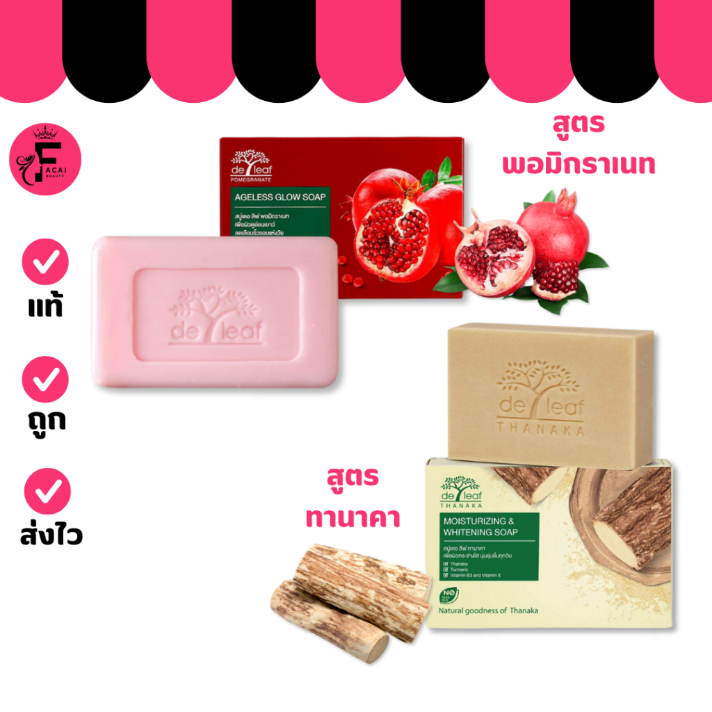 (แบบก้อน) De Leaf Thanaka (2สูตร) สบู่เดอ ลีฟ ทานาคา /สบู่ทับทิม (ปริมาณ 100 กรัม)