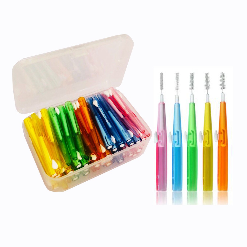60 ชิ้น/กล่อง 0.6-1.5 มม.Push-Pull Interdental แปรง Slim ไหมขัดฟันไม้จิ้มฟันจัดฟันลวดแปรง Oral Care brosse a dent
