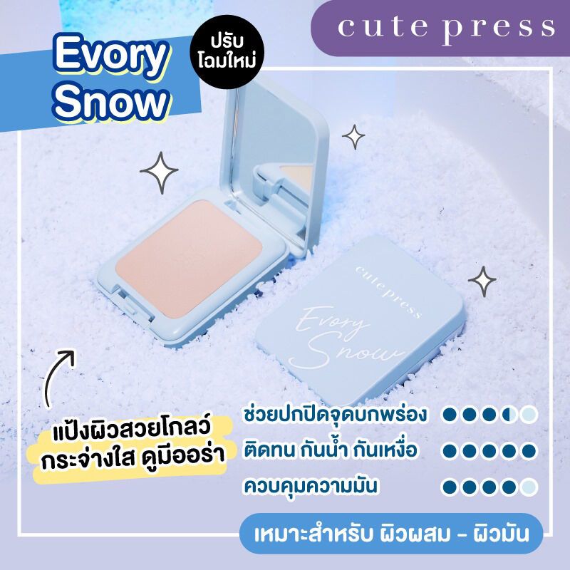 แป้งผสมรองพื้น คิวท์เพรส Cute Press Evory Snow Whitening&Oli Control Foundation Powder SPF30PA++
