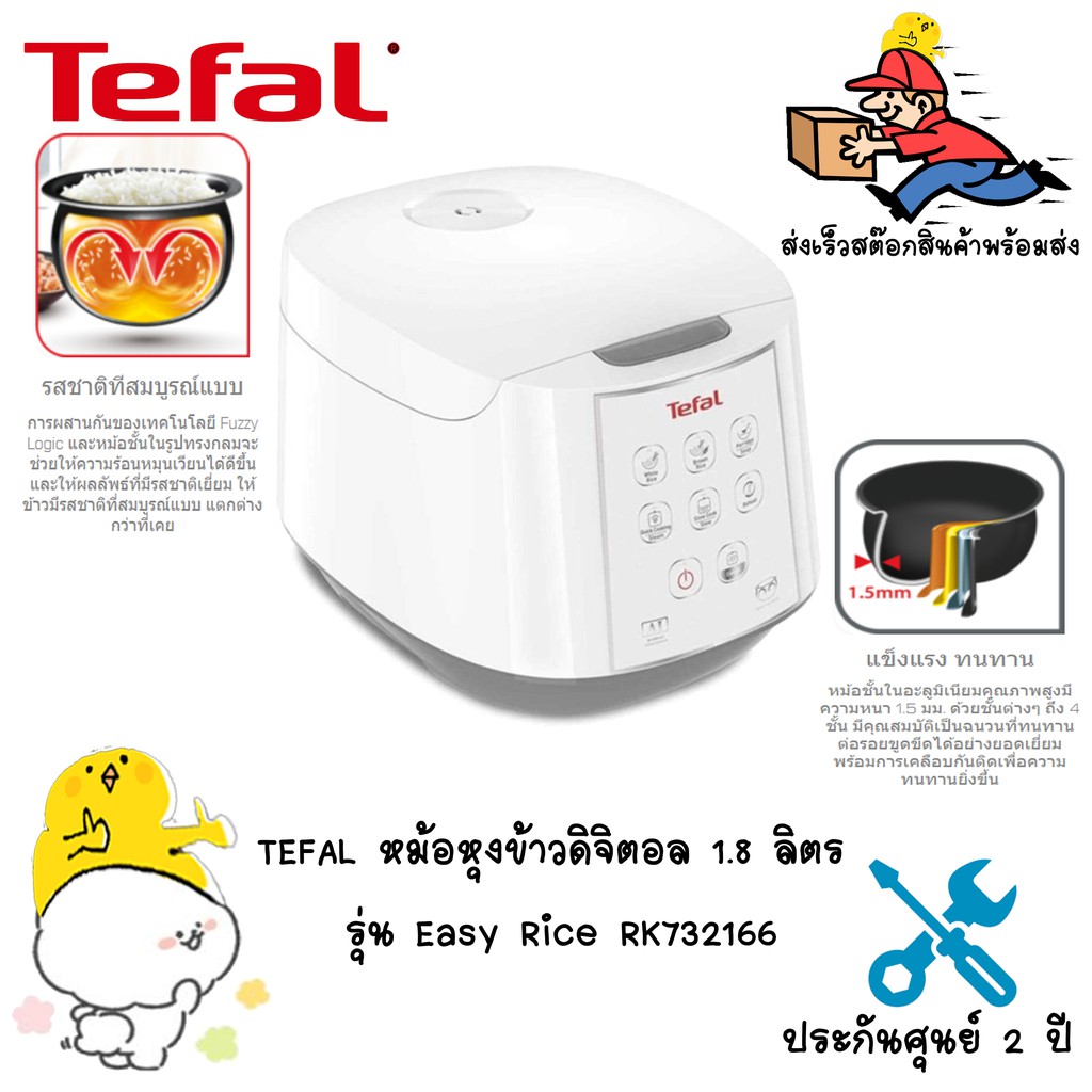 TEFAL หม้อหุงข้าวไฟฟ้าดิจิตอล 1.8 ลิตร รุ่น Easy Rice RK732166 สีขาว