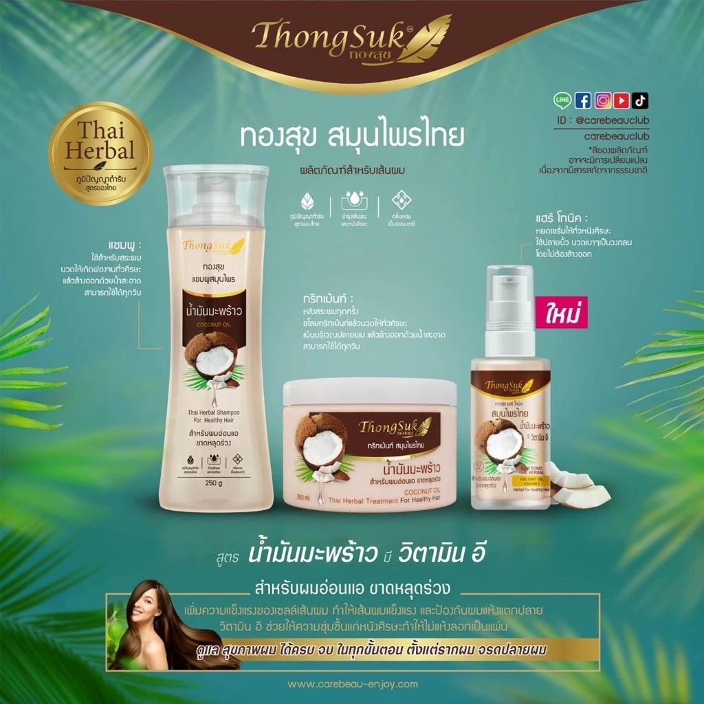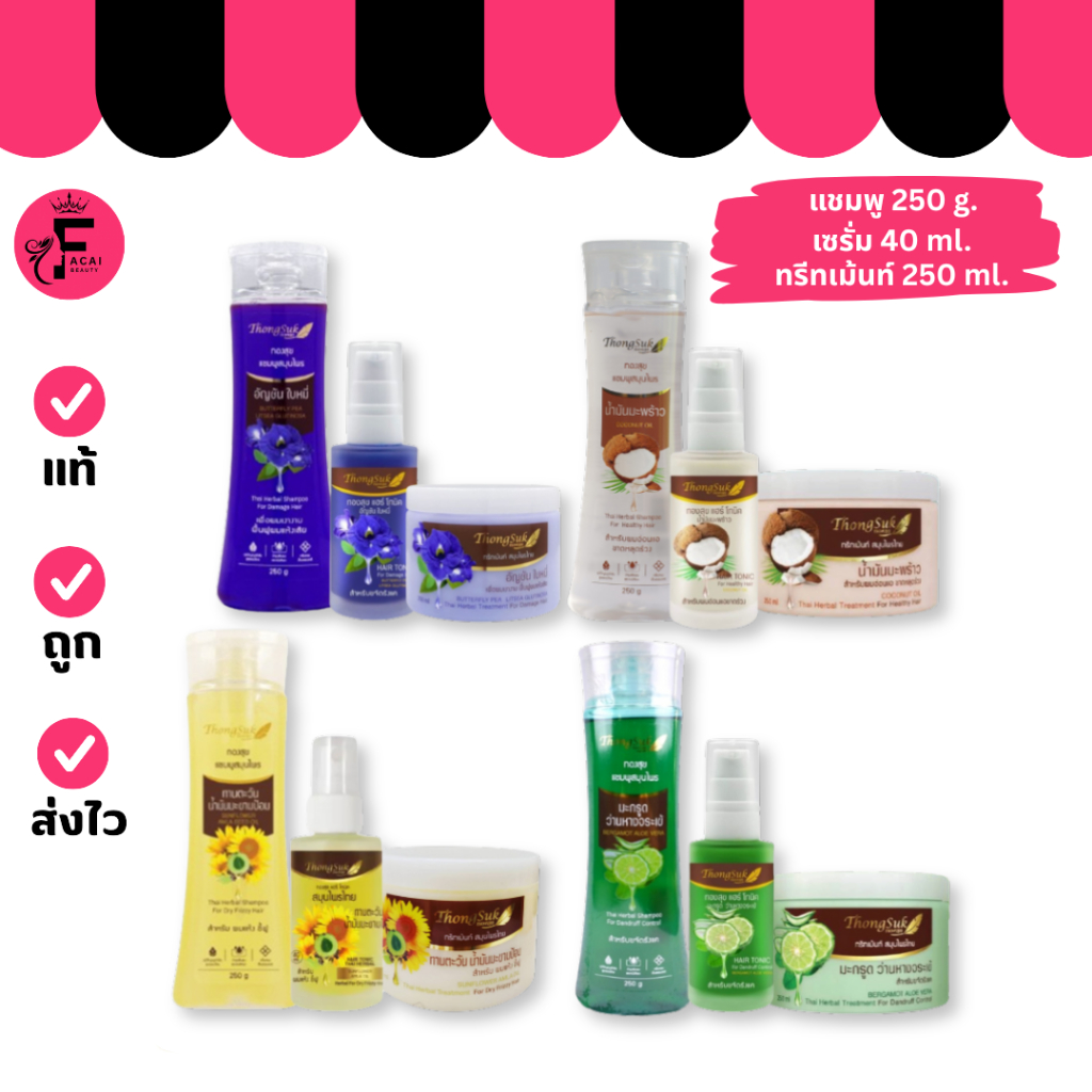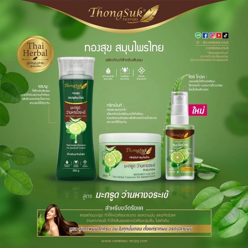 (1 ขวด/กระปุก) Thongsuk สมุนไพร ทองสุข แชมพู/ทรีทเม้นท์/แฮร์ โทนิค(40/250 ml./250 g.)