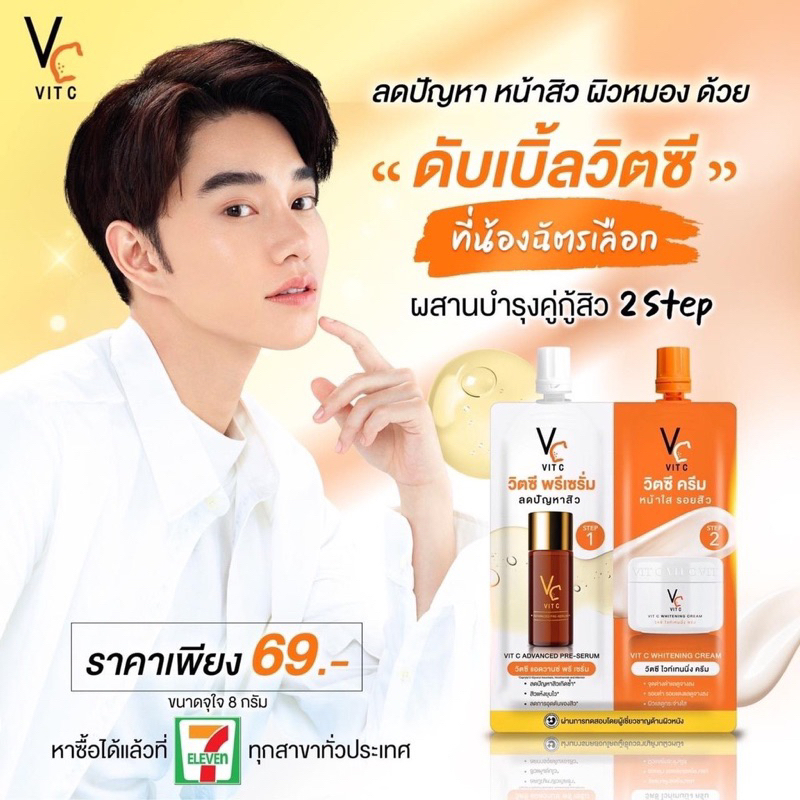 vcซองคู่[1กล่อง/6ซอง] ดับเบิ้ลวิตซี 2 STEP วิตซีน้องฉัตร VC Vit C Bio Face Advanced Pre-Serum + Whitening Cream 8 g.