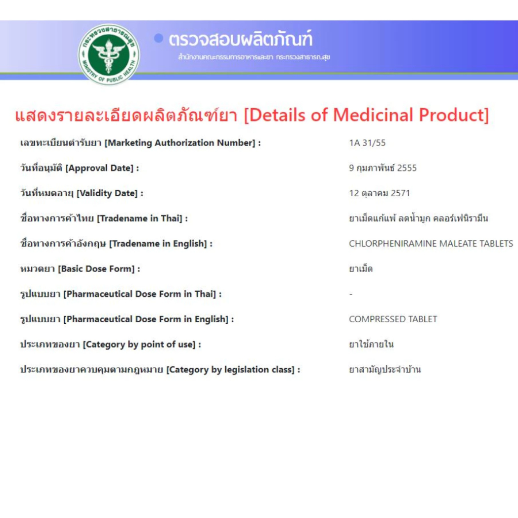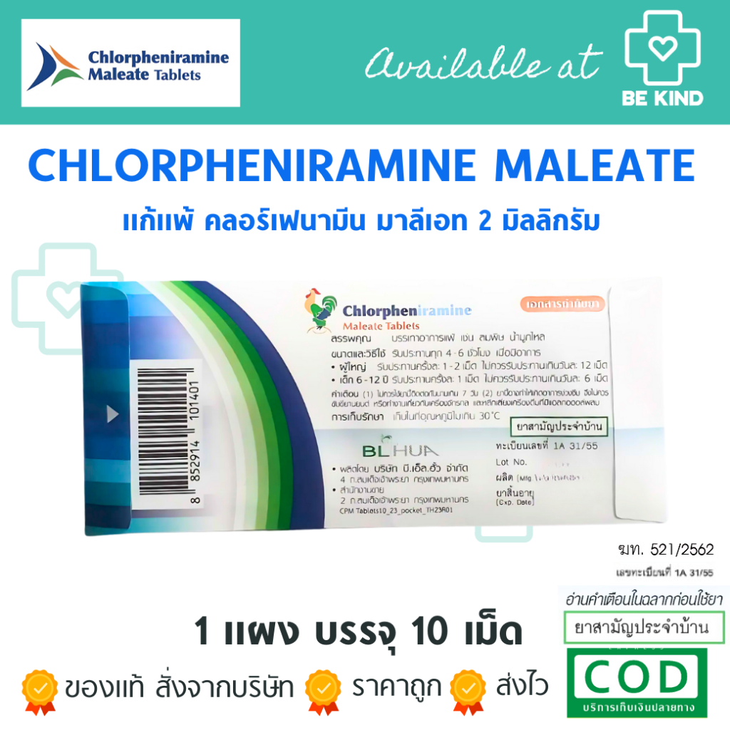 BLHUA ยาเม็ดแก้แพ้ ลดน้ำมูก Chlorpheniramine Maleate Tablets
