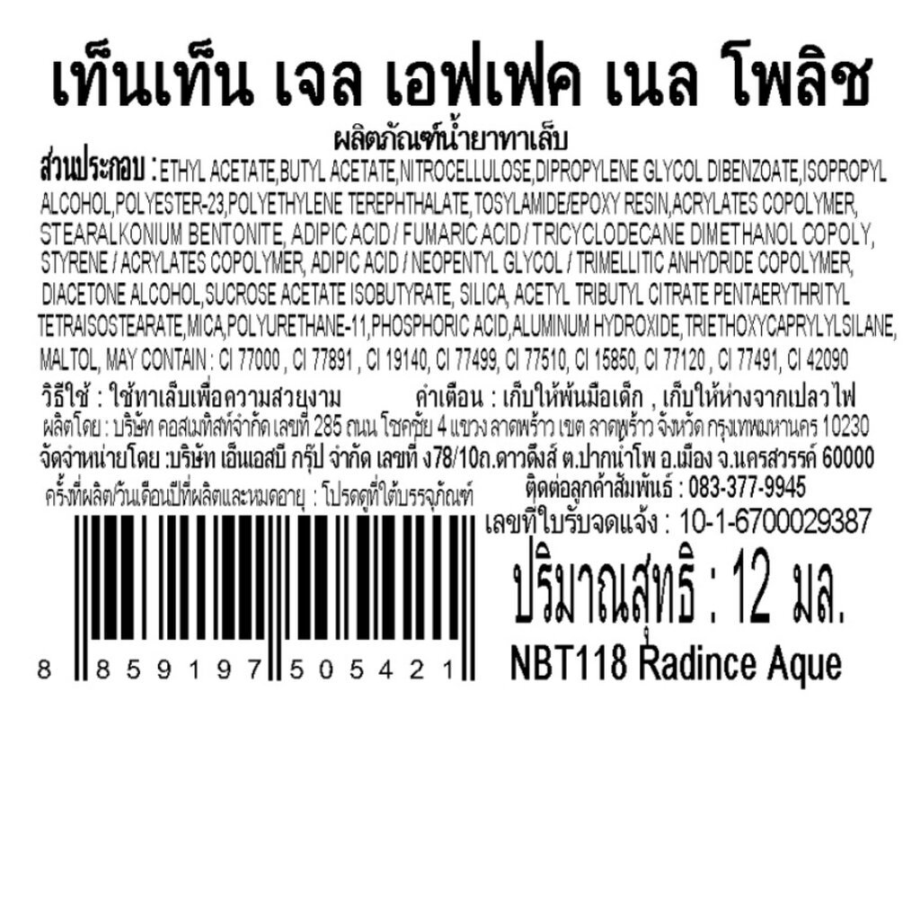 Ten Ten เท็น เท็น น้ำยาทาเล็บ เจล เอฟเฟค 12มล. NBT118 เรเดียนซ์ อควา