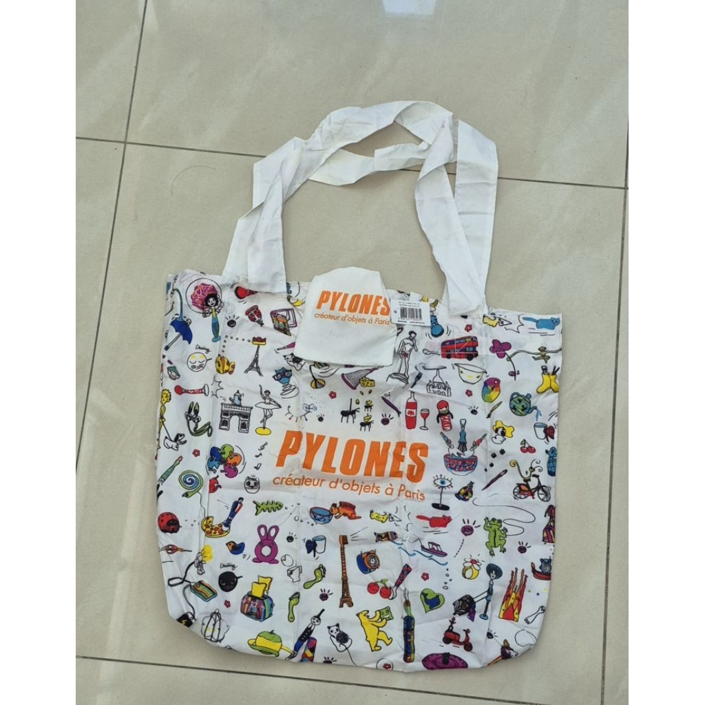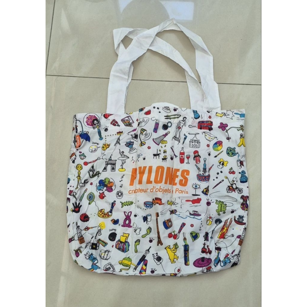 กระเป๋าผ้าสะพายสีขาวลายสดใส,Pylones