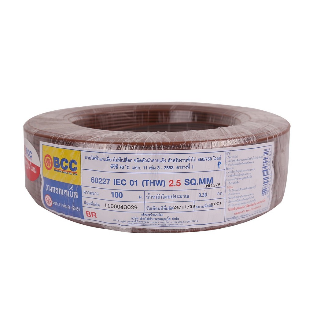 BCC สายไฟ IEC01 (THW) 1x2.5 Sqmm. ยาว 100 เมตร สีน้ำตาล |ROL|