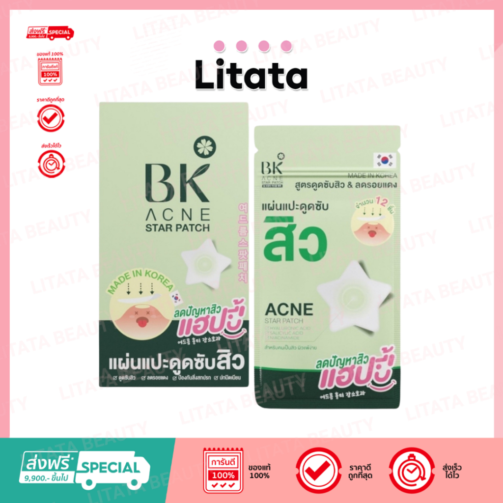 BK ACNE STAR PATCH - บีเค เอซีน สตาร์ แพทช์ แผ่นแปะสิว [ 12ชิ้น/ซอง ]