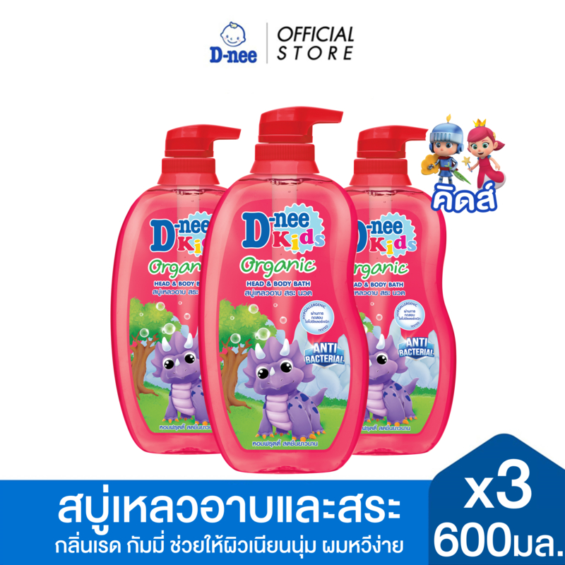 [แพ็ค3] D-nee ดีนี่ คิดส์ สบู่เหลวอาบและสระ กลิ่นเรด กัมมี่ 600 มล.x3, สีแดง
