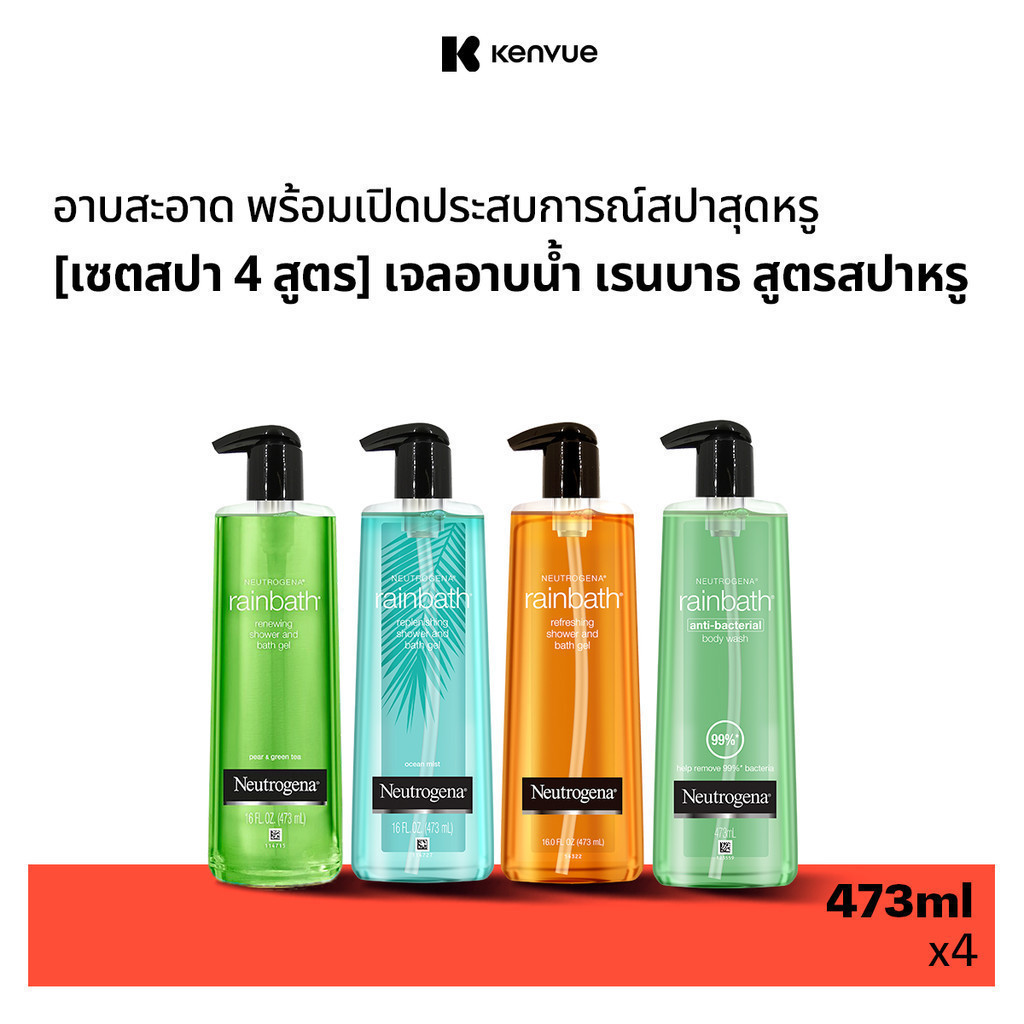 [เซ็ตสปา 4 สูตร] นูโทรจีนา เจลอาบน้ำ เรนบาธ รีเพิลนิชชิ่ง + โอเชียน มิสท์ + แอนตี้ แบคทีเรีย + รีนิวอิ้ง แพร์ และ กรีนที