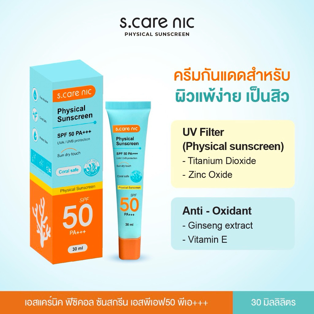 Physical Sunscreen กันแดด 100% non chemical sunscreen S.CARE NIC