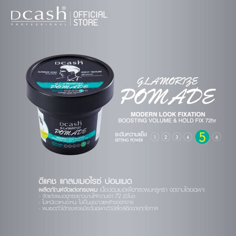 Dcash glamorize Clay Wax / Pomade 100 g. แคช แกลมเมอไรซ์ เคลย์ แว็กซ์ / โพเมด จัดแต่งทรงผม อยู่ทรงได้ยาวนานถึง 72 ชม.