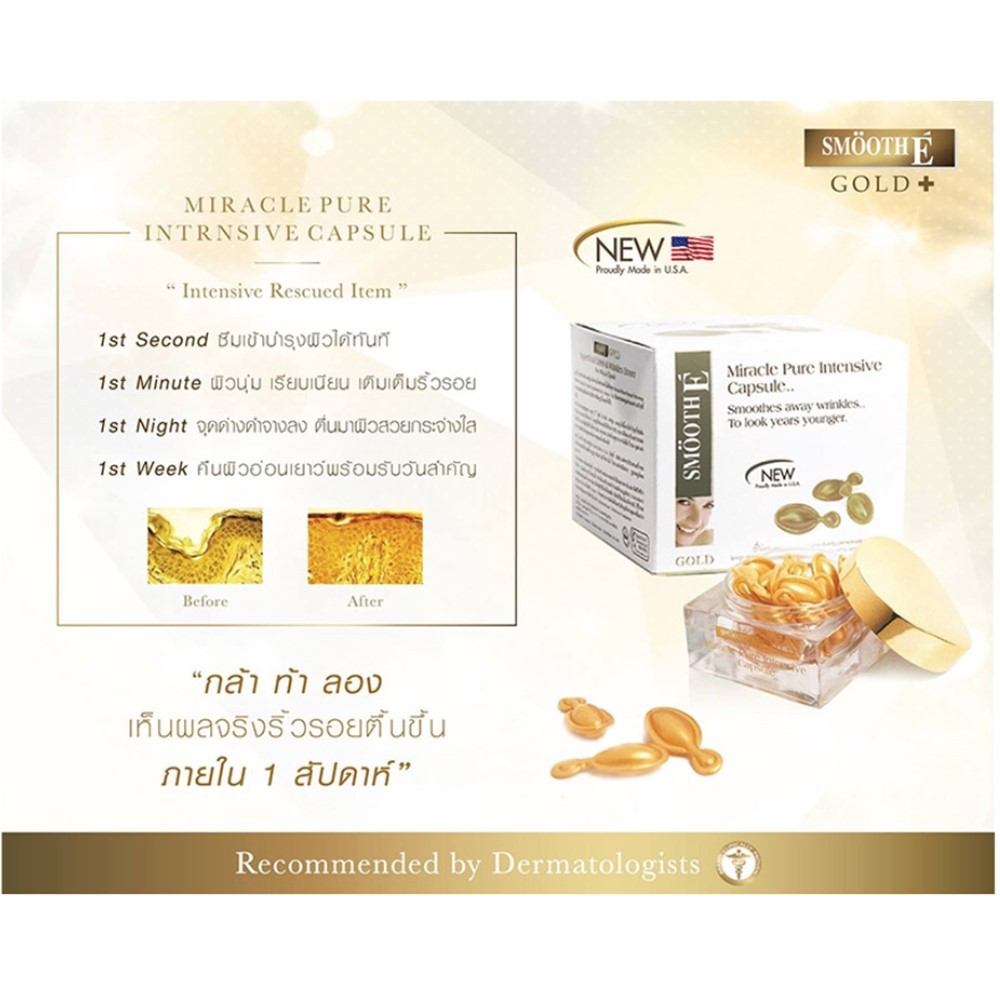 Smooth E Gold Miracle Capsule 12S’ แคปซูลเซรั่ม กระชับรูขุมขน ผิวหน้ากระจ่างใส จุดด่างดำดูจางลง