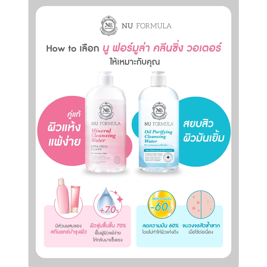 (510ml.) ล้างเครื่องสำอาง นู ฟอร์มูล่า มิเนอรัล/ ออยล์ เพียวริฟายอิ้ง คลีนซิ่ง วอเตอร์ Nu Formula Cleansing Water