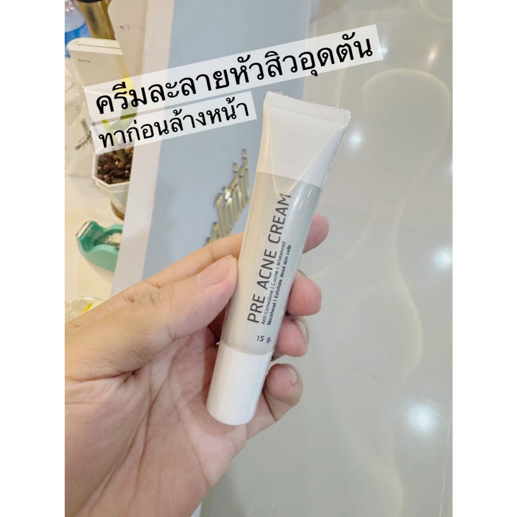 Pre Acne Cream 15 g. l ครีมทาก่อนล้างหน้า ละลายหัวสิว ช่วยลดสิวอุดตันสิวเสี้ยน ให้แข็งกดออกง่ายขึ้น