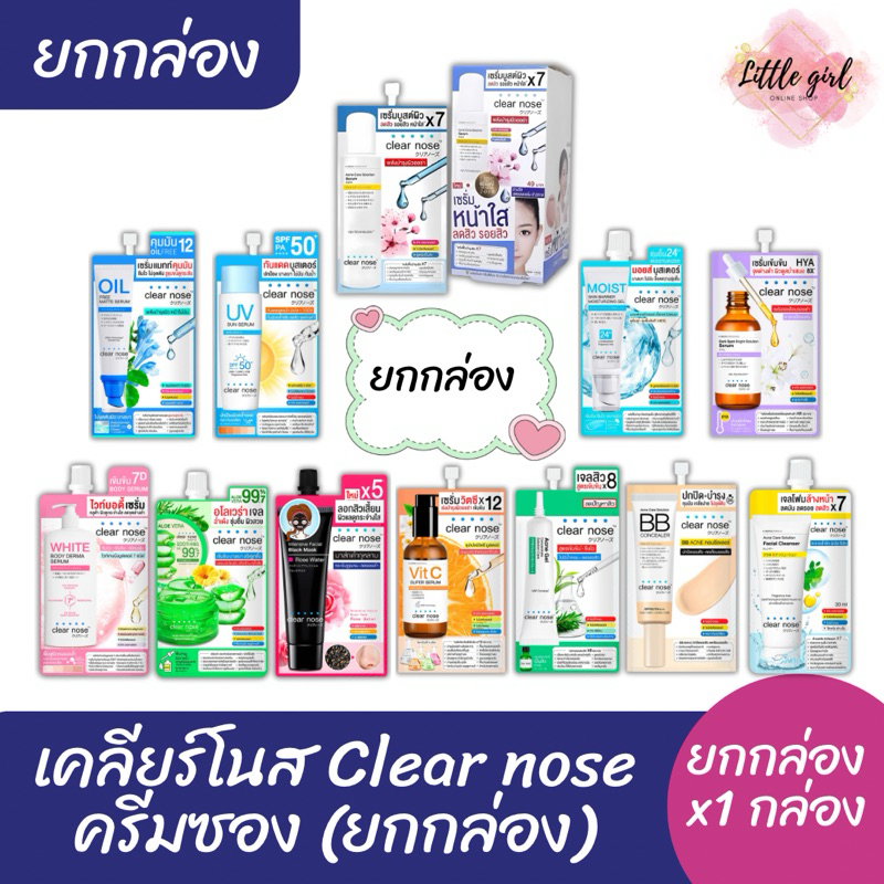 (1 กล่อง) เคลียร์โนส Clear nose ครีมซอง ยกกล่อง 1 กล่อง ครีม เซรั่ม กันแดด แต้มสิว วิตซี มอยส์เจอร์ไรเซอร์ อโลเวร่า บีบี