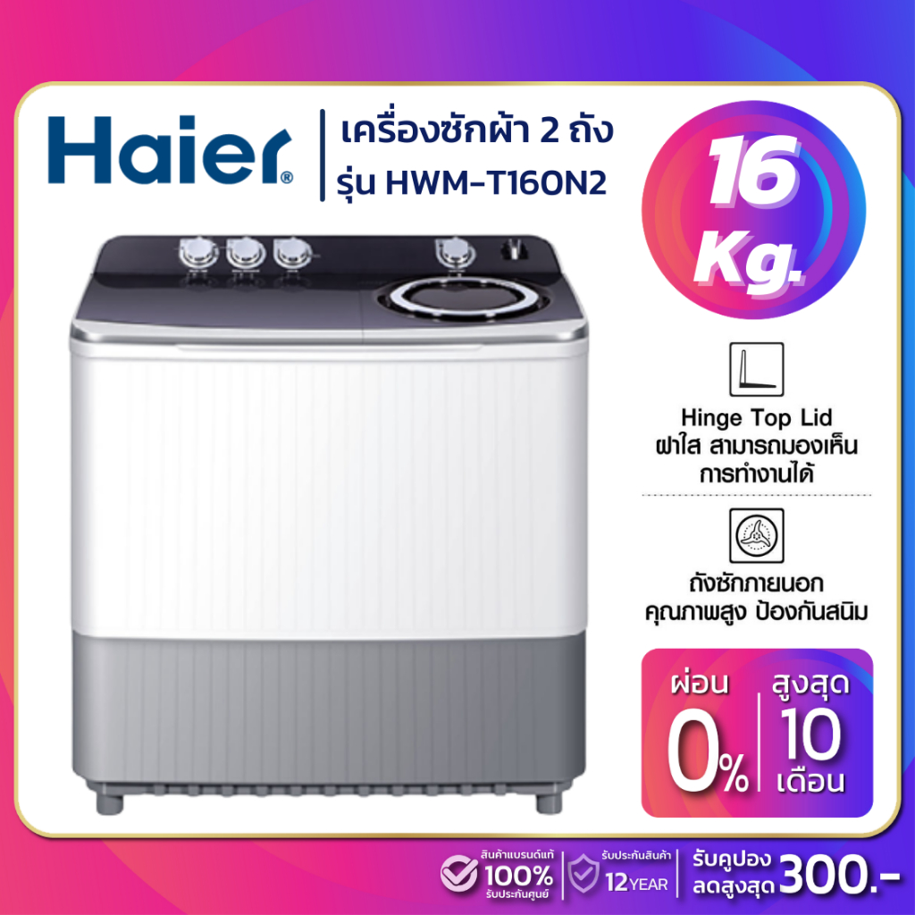 เครื่องซักผ้า 2 ถัง HAIER รุ่น HWM-T160N2 ขนาด 16Kg. ( รับประกันสินค้านาน 12 ปี )