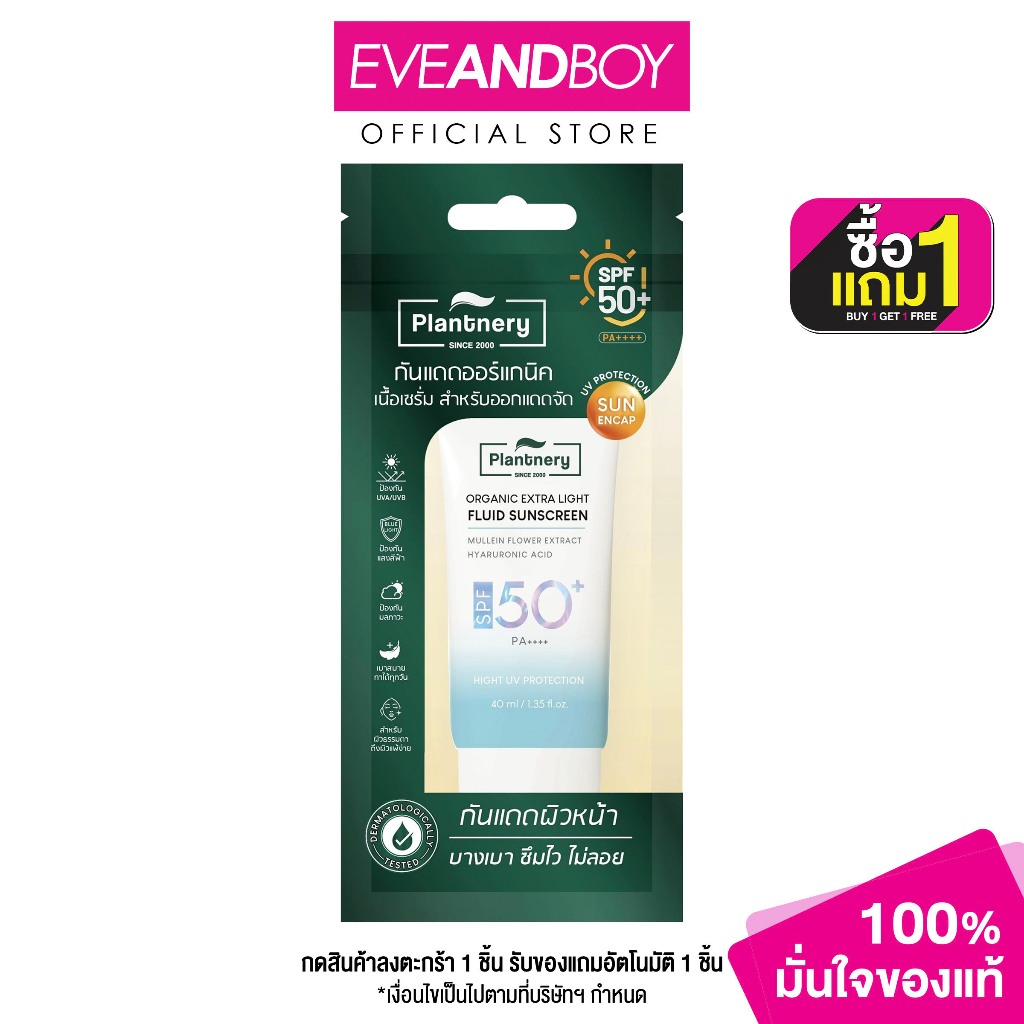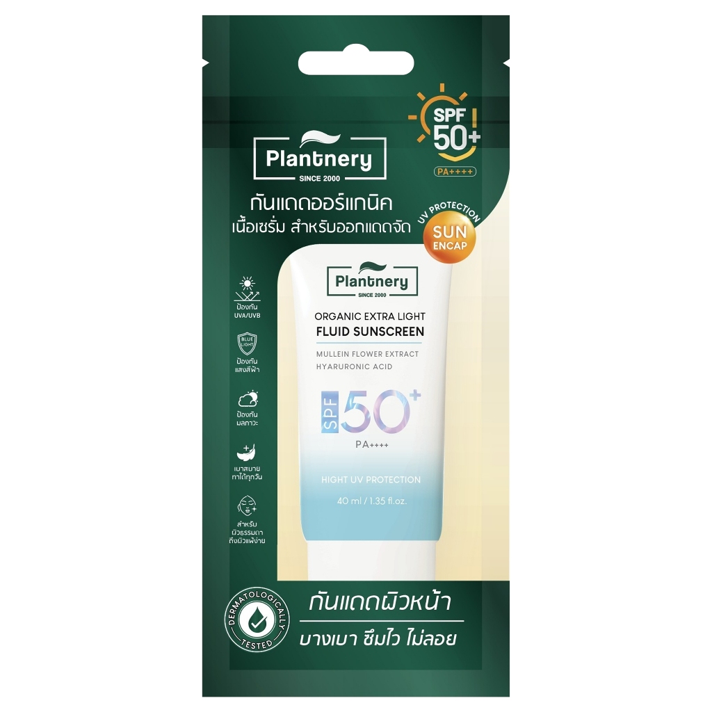 PLANTNERY Organic Extra Light Fluid Sunscreen SPF50+ PA++++ ปริมาณ 40 ml. แพลนท์เนอรี่ ครีมกันแดดเนื้อเซรั่มฟลูอิด