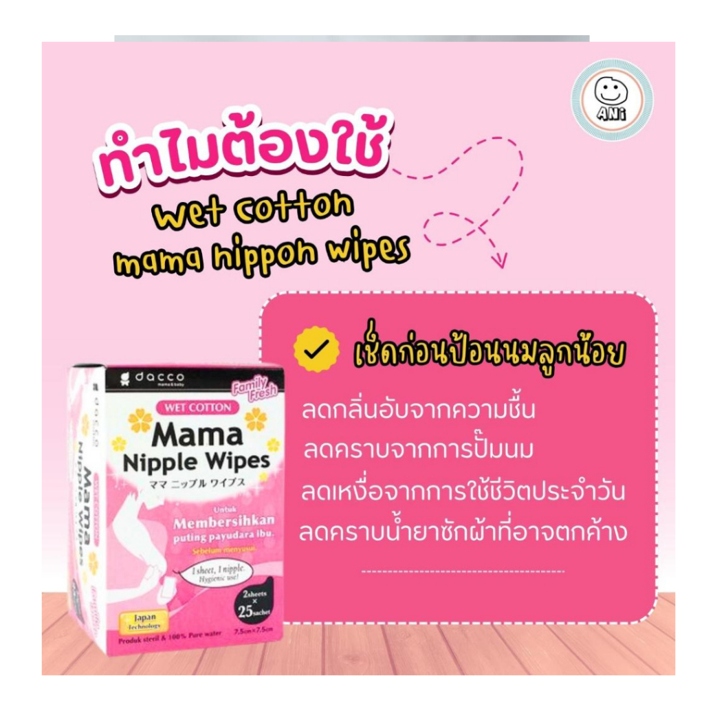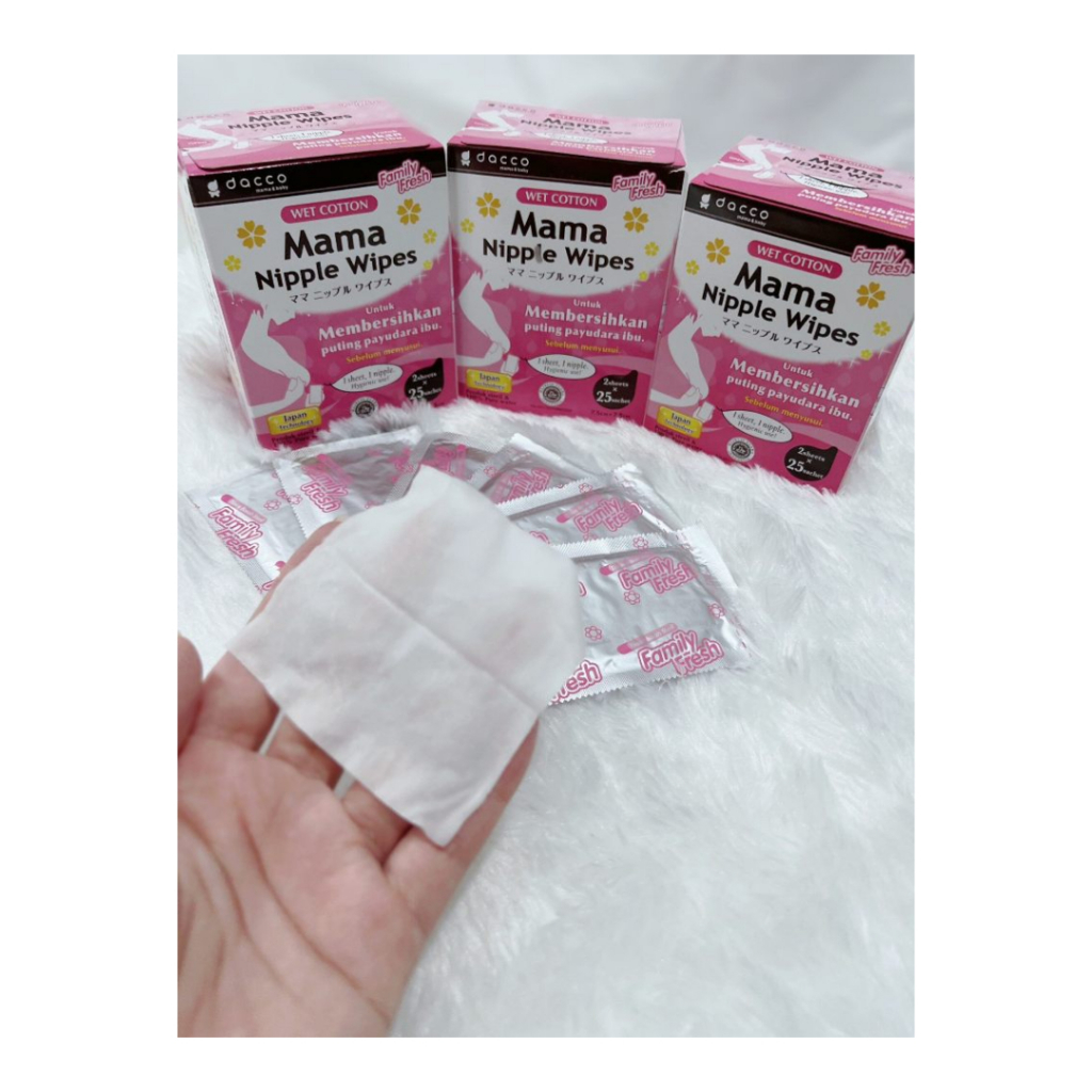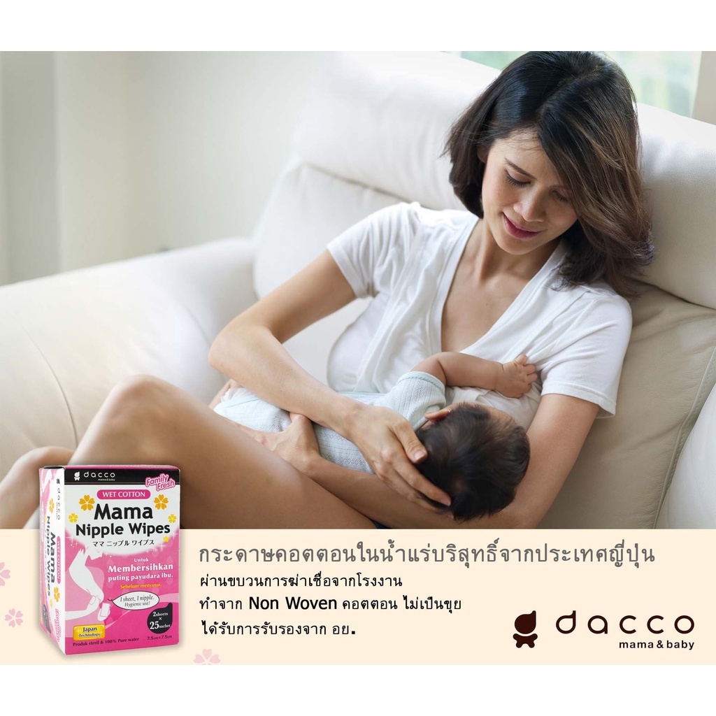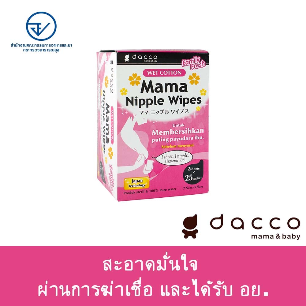 Dacco ผ้าเช็ดทำความสะอาดเต้านม จากประเทศญี่ปุ่น mama nipple wipes 1 กล่อง 25 คู่ 50 แผ่น #989150