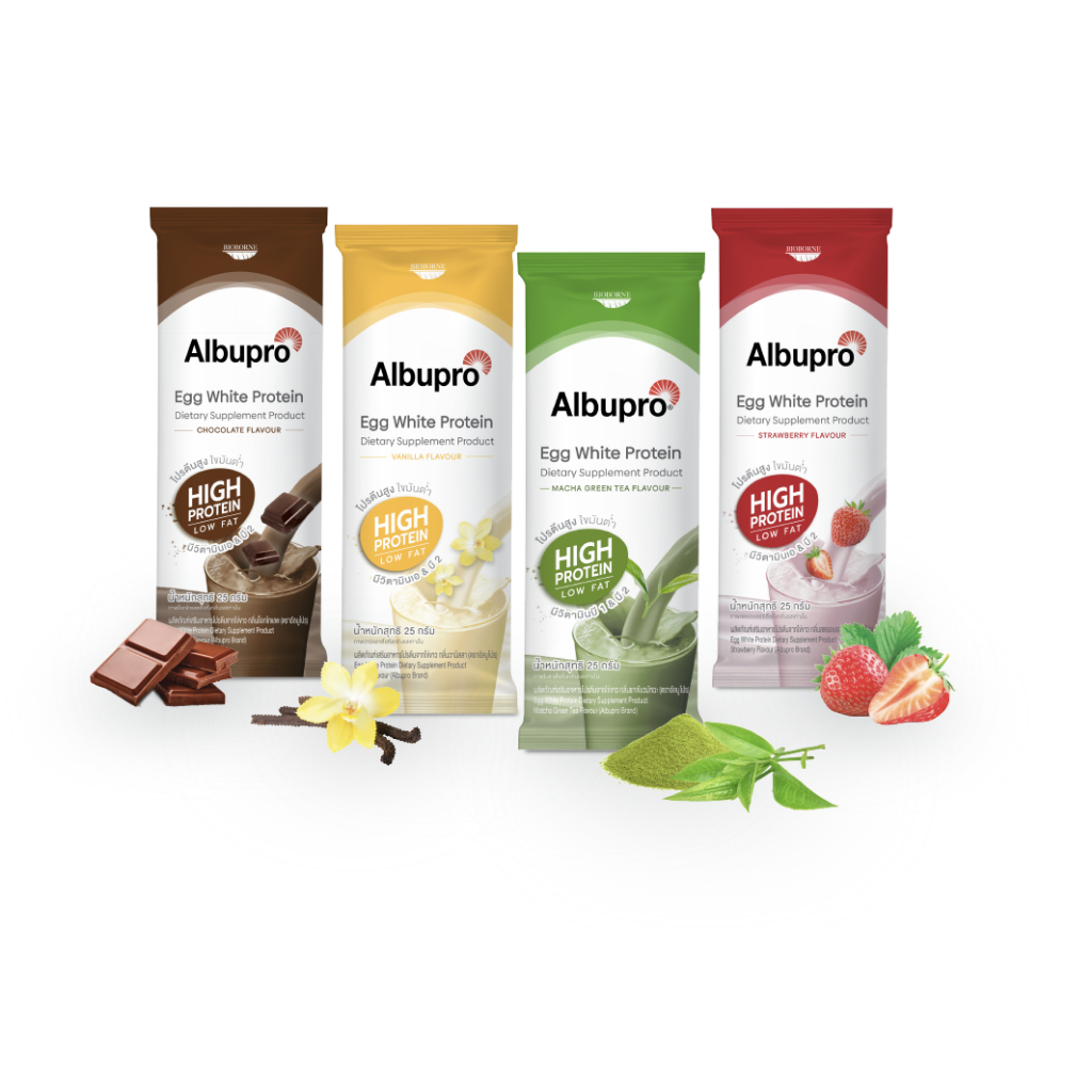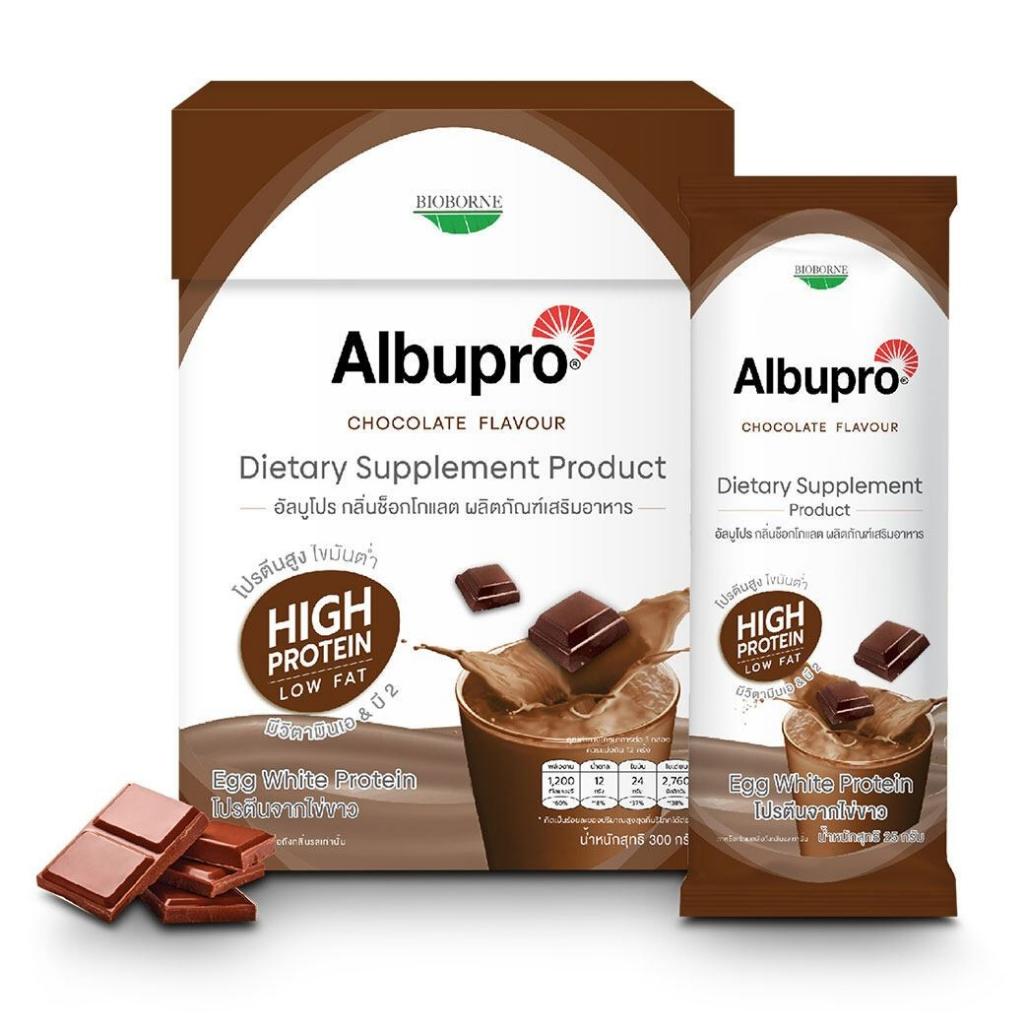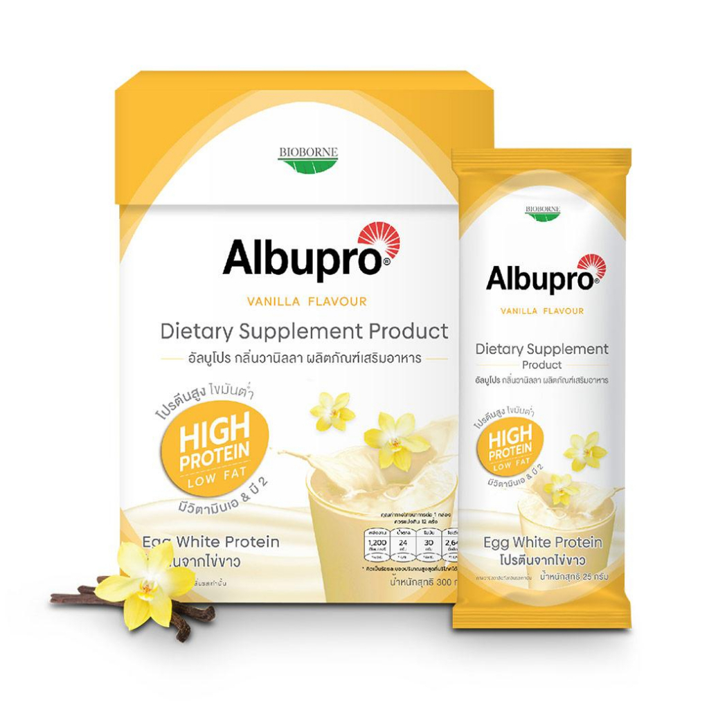 🐣Albupro อัลบูโปร โปรตีนจากไข่ขาว มีโปรตีนอัลบูมิน ที่ให้กรดอะมิโนจำเป็น 1กล่อง 12ซอง 🐣