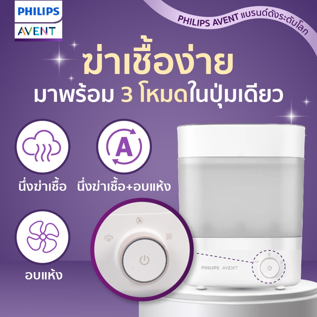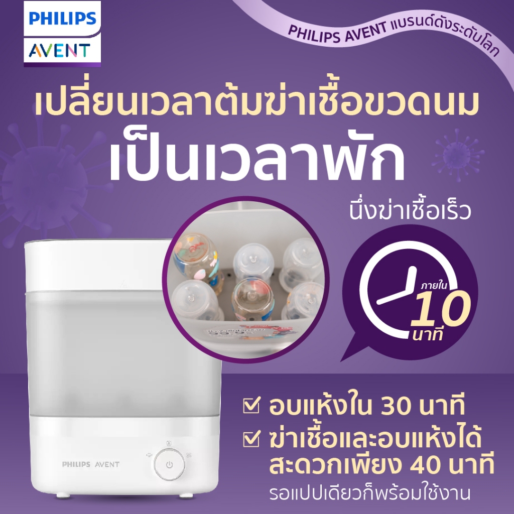 Philips Avent ฟิลิปส์ เอเว้นท์ เครื่องนึ่งฆ่าเชื้อพร้อมอบแห้งได้อย่างรวดเร็ว SCF293/00